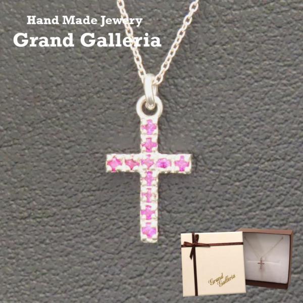クロスネックレス シルバー925 ルビーレッド 合成ルビー ルビー キュービックジルコニア 十字架 クロス ネックレス ペンダント キラキラ 透明 シルバーアクセサリー レディース 母の日 キリスト クリスマス 誕生日 プレゼント 女性 彼女 Grand Galleria グランドガレリア