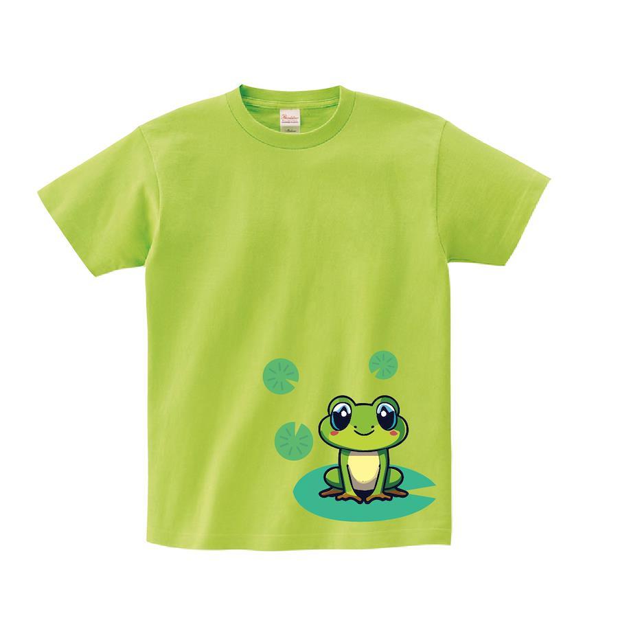 【Tシャツ 半袖 】カエル かえる 蛙 蓮の葉 葉 かわいい ケロケロ リンクコーデ グッズ オリジナル デザイン メンズ レディース キッズ [ 5.6オンス 厚手 綿100% 豊富なカラー 長持ち 肌触り良い 天然素材] コットン シャツ 白 黒 アウトドア