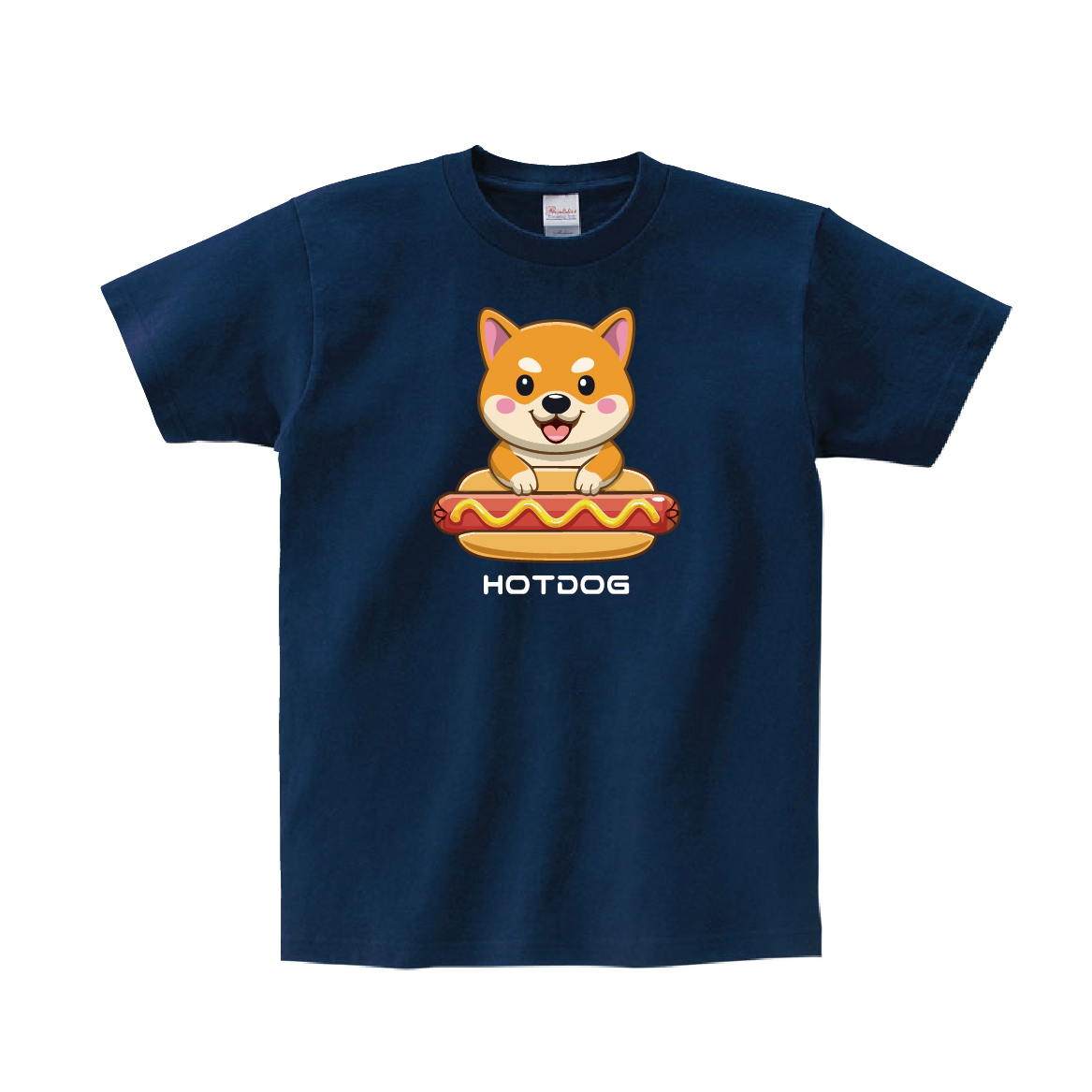 ホットドッグを食べようとしているかわいい柴犬のTシャツです。※画像ははめ込み画像となり、実際とは多少異なりますので予めご了承ください。 ※サイズ表をよくご確認の上ご購入ください。 ※受注生産となるため、返品、交換はご遠慮ください。