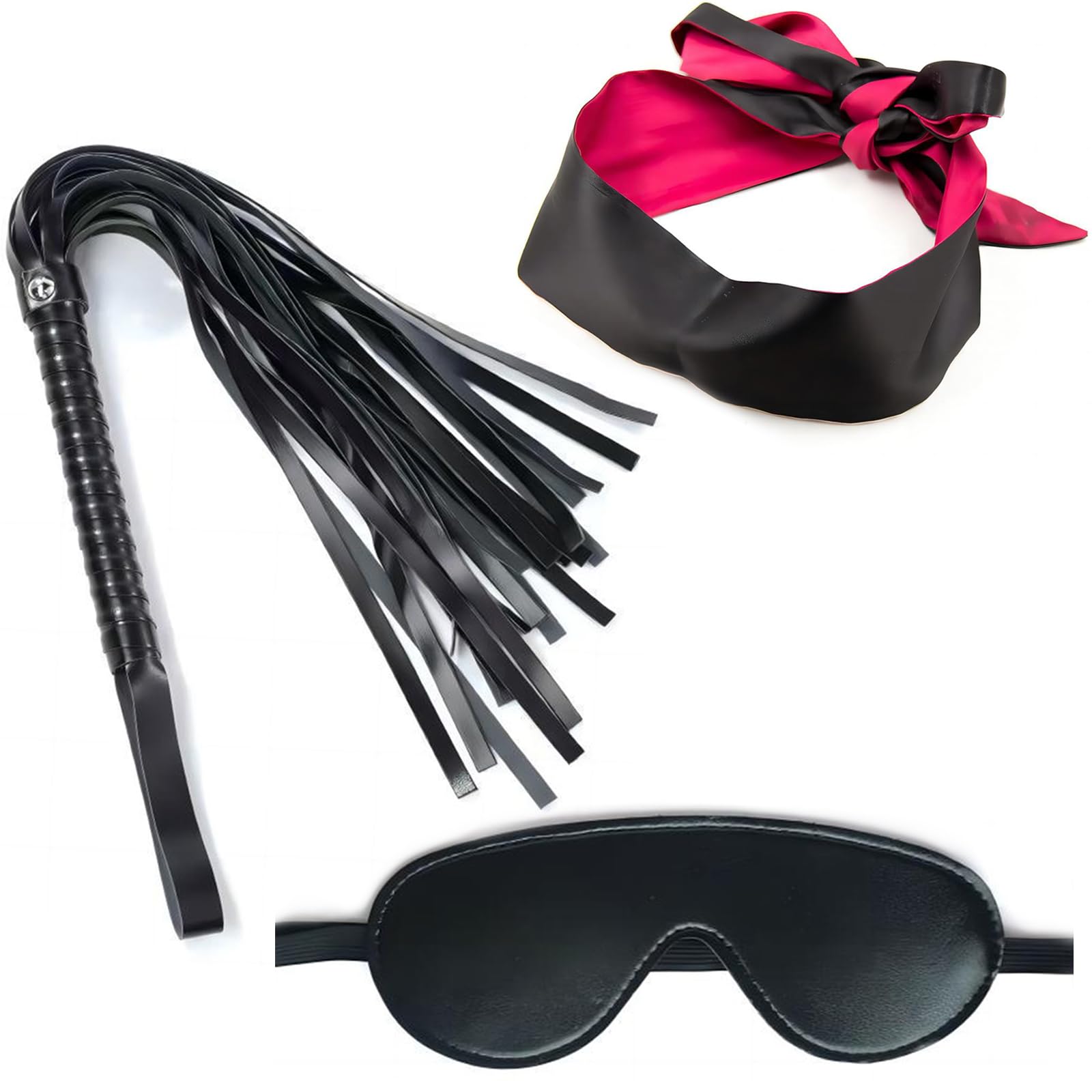 [Cyvorsky] 【人気3点SMセット】SMグッズ 女性 SMプレイ【アイマスク&バラ鞭&シルク質リボン・収納ポーチ付】目隠し アダルトグッズ 女性 手枷 足枷 ムチ 手足の拘束ベルト お仕置きコスプレ道具 簡単拘束 3点セット