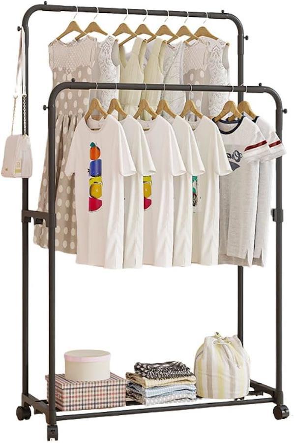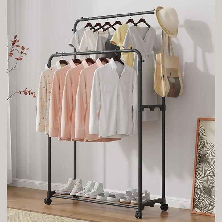 「ダブルポールで大容量」上下2段にたっぷり掛けられる、幅80cmのコンパクト収納