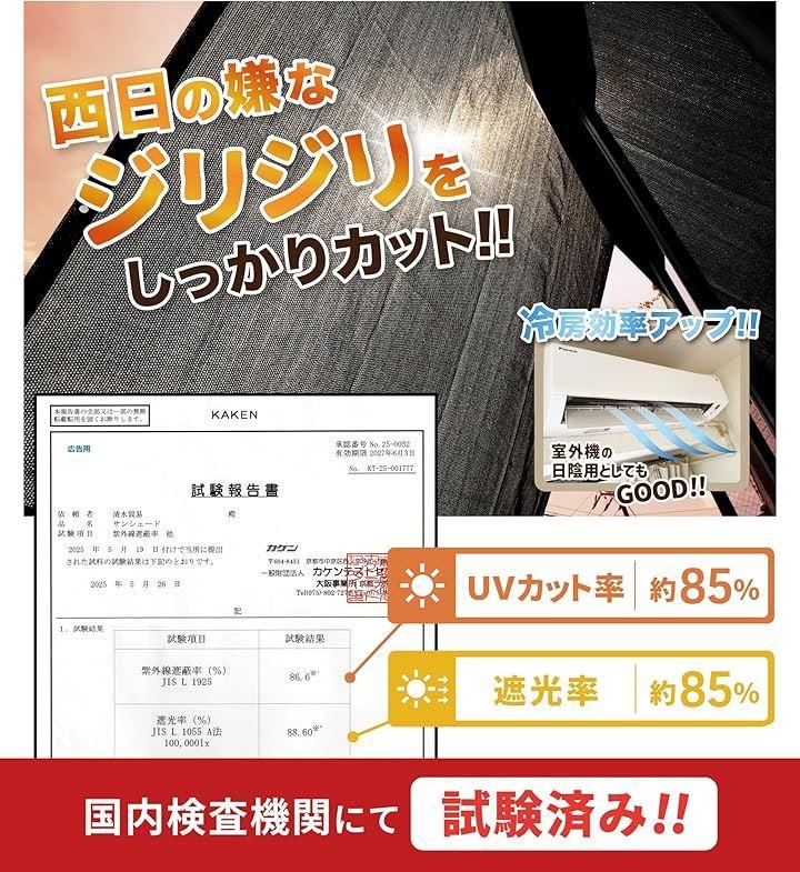 UVカット率約85%・遮光率約85%(国内検査機関にて検査済)。