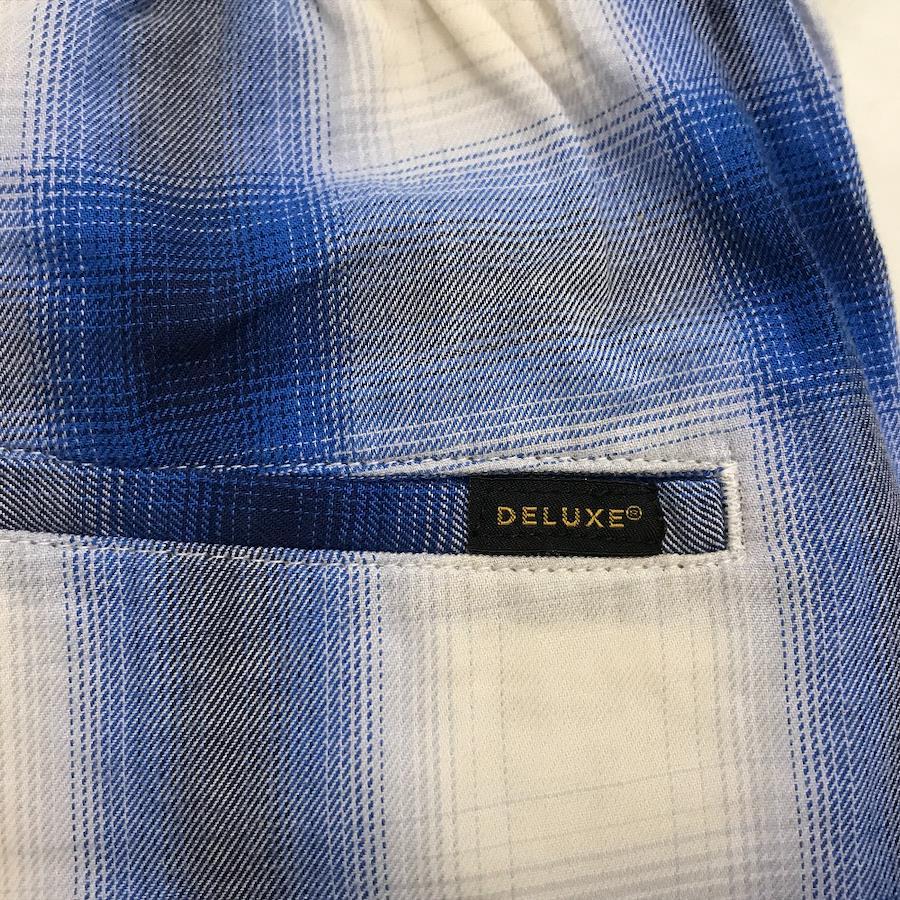 ブルー x ホワイト【モデル】チェック柄イージーパンツ