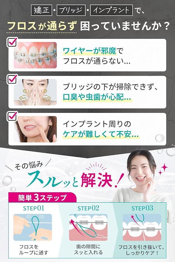 「矯正やブリッジで、フロスが通らずイライラ…を解決。」 普段使っているフロスが通らず困っていた方に。