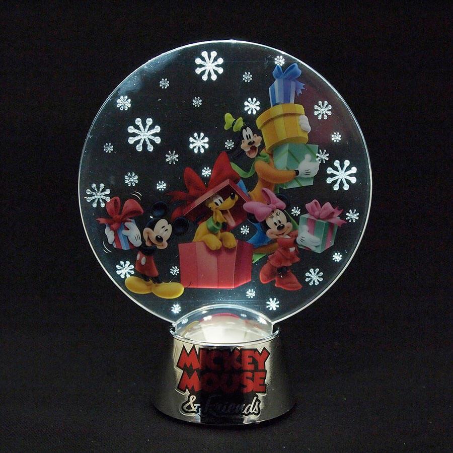 ミッキーと仲間たちが描かれたのフラッシングライト。内蔵されているLED電球が交互に光ることによって、イラストがアニメーションのように動いて見える置物です。