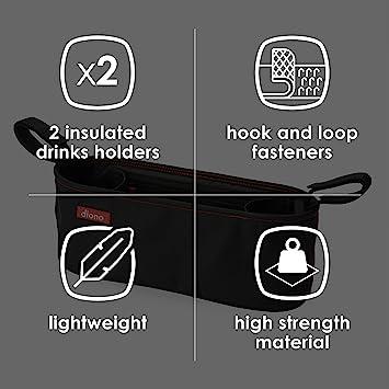 The highly practical Diono Buggy Buddy pushchair organiser is the ideal baby travel accessory when you are out with your stroller. It features a sturdy frame, a large insulated travel compartment, insulated drinks holders, waterproof fabric, a zipped pocket, and velcro straps to attach t