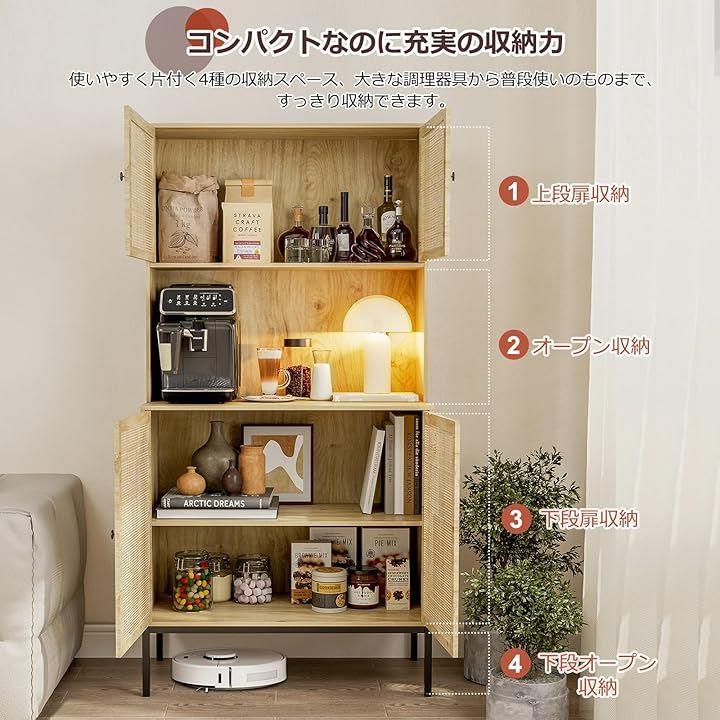 他とは違うおしやれを取り入れたい方にひったりの.ラタン調デザインをさりげなくあしらった収納キャビネット。