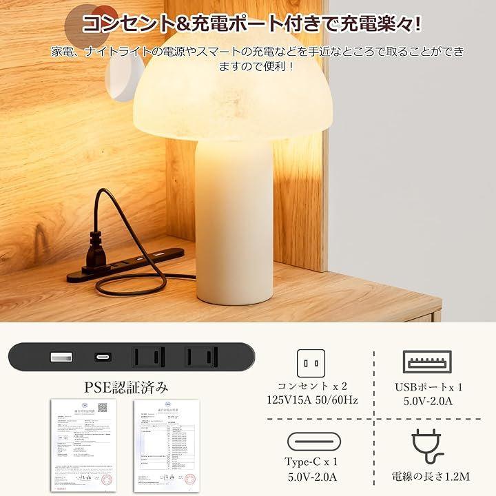 また、オープンスペースの棚板にコンセント口2口とUSB&TypeCポートを備え、家電の電源やスマートフォンの充電などを手近なところで取ることができるので便利です。