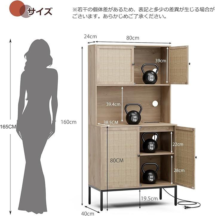 「商品仕様」*本体サイズ:幅80x奥行40x高さ160(cm)*個体差により若干の差異あり*梱包サイズ:約92 x 48 x 21 (cm)*梱包重量:27 kg*材質:天然ラタン+MFD天板+スチールパイプ*本体重量:約26.3kg*耐荷重:天板:約30kg|底板:約20kg|可動棚板:約20kg*「備考」*お客様組み立て品