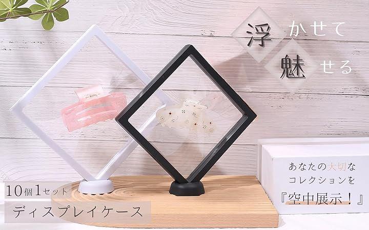 材質:PETメンブレン、プラスチック カラー:ブラック/ホワイト サイズ:9x9cm セット内容:ディスプレイケース10個、ベーススタンド付き 用途:コイン 切手 アクセサリー ネイルチップ インテリア 収納