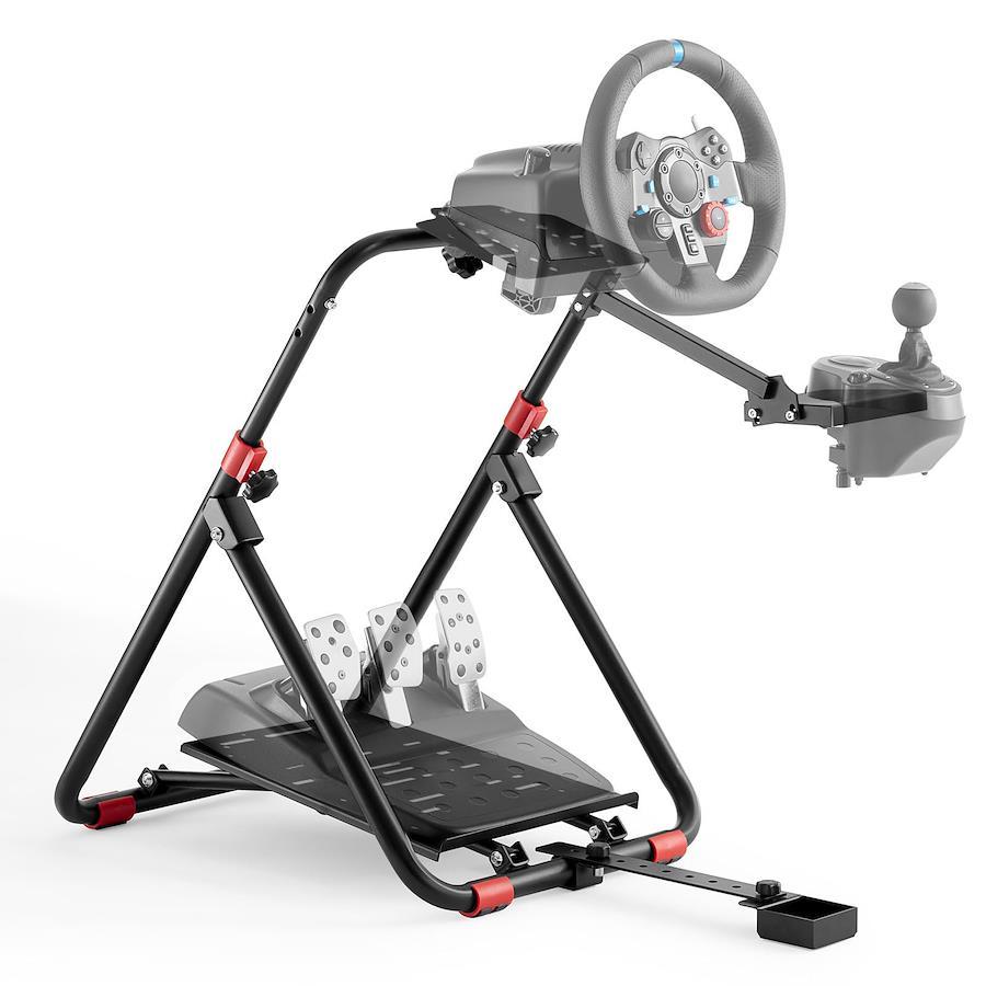 Installation is easy, 10 minutes!Very sturdy and stable construction allows you to drive freely in intense driving competition.Adjustable Racing Wheel Stand angle height Adjustable bottom plate angleRacing Wheel Stand can be mounted on left or right speed levers. You can fine-tune the position of the handle and pedal as you need.This wheel stand stand folds up quickly and reduces it to a smaller size that makes it a real option for users who have limited floor area and storage room.DIWANGUS Racing Wheel Bracket for Logitech Thrustmaster PS3 Ps4 Ps5 Xbox PCSpecifications:Material: SteelColor: BlackBase Size: 27.1 x17.7 inches / 69 x 45 cm (L x W)Wheel Frame Height Adjustment: 20.5-29 inch / 52-73 cmCompatibility:-Compatible with Logitech G923 / G920 / G29 / G27 / G25-Supports Thrustmaster T300RS GT / T300RS / T300 Ferrari/ TX / T-GT / TS-PC / TS-XW / T150 / T80 / T248 / Ferrari 458 / TMX / TMX PRO-PS4 / PS5 / Xbox 360 / Xbox 1/ PCPlease note:Handle, gear lever and game pedals are not included. PATENT PENDING: This is a universal racing steering wheel bracket designed for most models on the market. Compatible with Logitech: G923 / G920 / G29 / G27 / G25 ; Compatible with Thrustmaster T300RS GT / T300RS / T300 Ferrari / TX / T-GT / TS-PC / TS-XW / T150 / T80 / T248X/ Ferrari 458 Suitable for gaming platforms for / TMX / TMX PRO; PS5/PS4/Xbox 360/Xbox 1/PC Note: (excluding steering wheel, game pedal, transmission) PROFESSIONAL RACING WHEEL STAND: Our racing wheel stand is made of high strength alloy steel, which has more rigidity and unparalleled durability, not easy to wear, and these solid brackets will not move or fall off during intense competition. Very solid and can be used for years. Covered with a special coating that resists rust and fading 90% INSTALLED: The biggest advantage when compared to other products is that the basic installation is complete and it is already completed, so you don't have to worry about the hassle installation process. Simply secure the pedal and gear lever to the desired position Adjustable Height and Angle: The angle and height of the wheel frame is adjustable. Whether you are sitting on an office chair, dining chair or sofa, you can adjust it to your own position for a smooth driving experience during the game. Drive with confidence. The angle of the steering wheel platform is 120° adjustable. The transmission lever can be installed either left or right depending on your preference FOLDABLE DESIGN: After enjoying the racing game, you can easily fold the Steering Wheel Stand to slide under the sofa or store it anywhere in the house to save space. We have a convenient and foldable design that allows you to easily transport your stents. So you can play games anytime, anywhere Peace of Mind After-Sales: We provide friendly customer support to help you away from the worry of after-sales service. If you have any questions, please contact us freely. We will respond to your information within 24 hours and we will provide you with satisfactory actions so you can buy with confidence! [Best Gift]: DIWANNGUS racing wheel stand is suitable for everyone. When the holiday comes, it's a very good idea gift! ▲▲【Contact Method】: "Account Service" in your account service,"Order history," "Order number", "Seller by", "Ask questions" Please note that steering wheel and pedals are not included