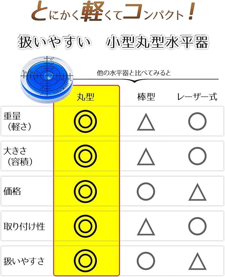 「小型」小型・丸型の水平器(水準器・レベラー)どこにでも置いて2方向の水平を手軽に計測できます。
