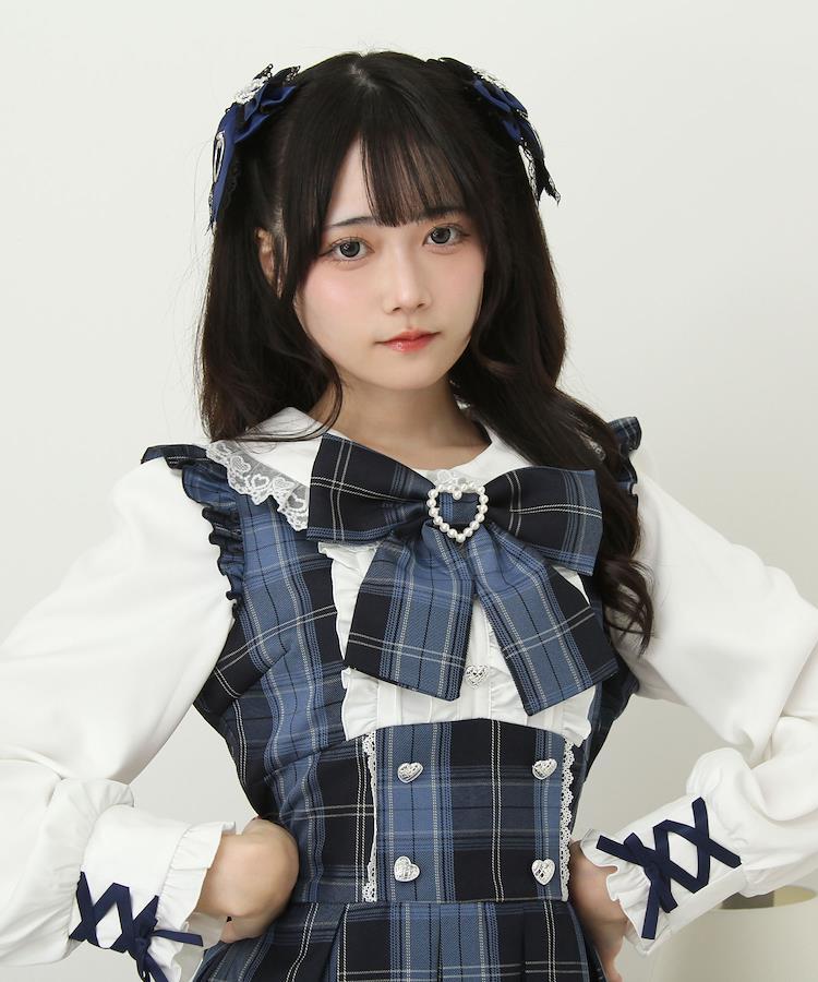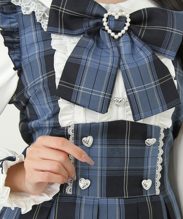 襟元の大きめリボンにはハートパールバックルがポイントになっています。