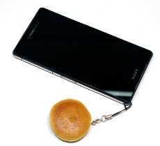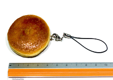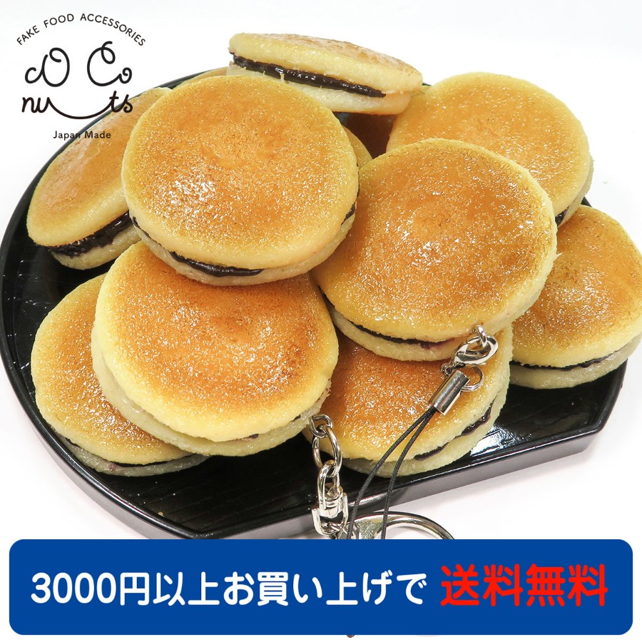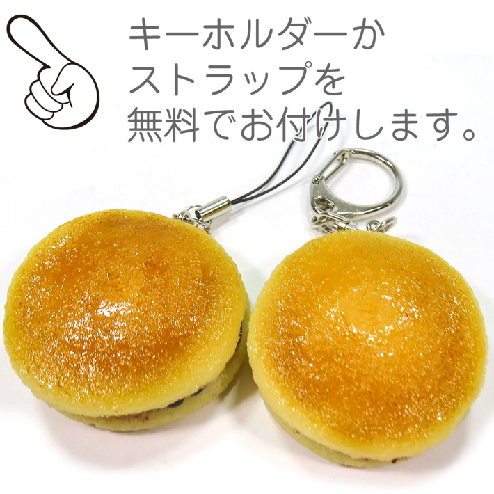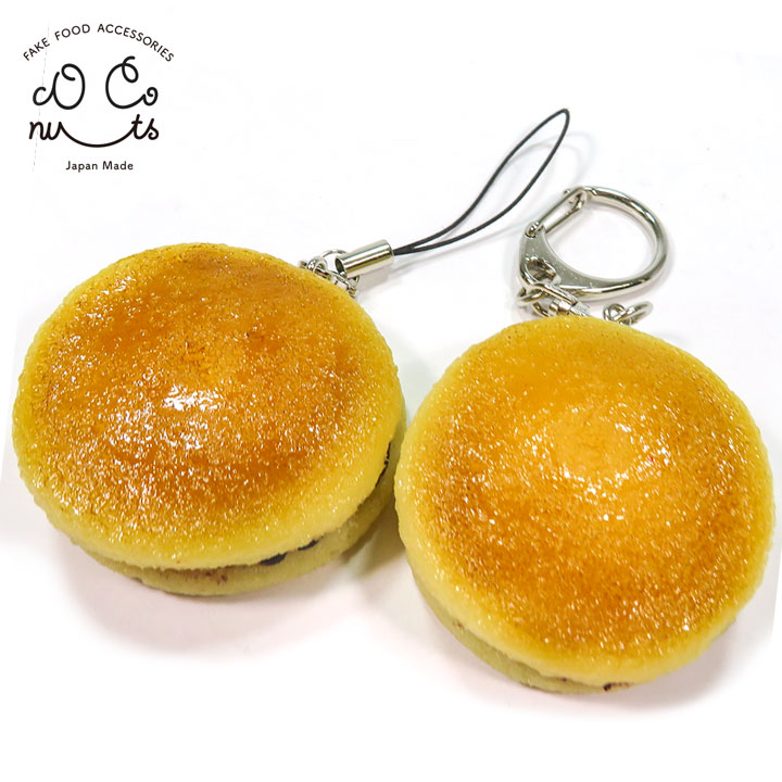 本物そっくりに作ったミニチュアのどら焼きです。粒あんがチラリと見えるタイプです。