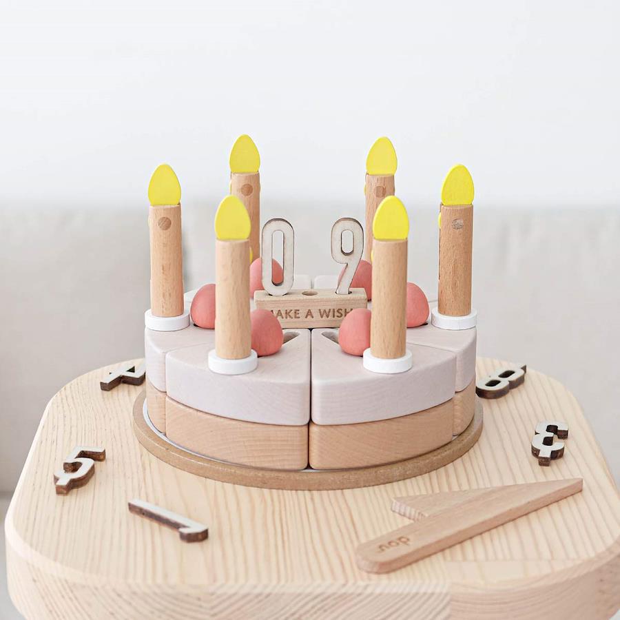 「make a wish」は 「ちいさな魔法」が込められた遊び心のある木のケーキです。 おいしそうなケーキにろうそくをたて、 ”ふぅー”と息を吹きかけると本物のろうそくのように火を消すことができます。 ろうそくを穴にさすペグ遊びや、ろうそくの火をたてる指先の動きは手先を器用にし、 脳の発達を促すと言われています。 ろうそくの火を立てるのは簡単ではありませんが、 この小さなチャレンジに子供たちの成長を願っています。 ナンバーピックがついているので 大切なお誕生日や記念日に思い出に残る写真を撮影するアイテムとしても。 ケーキは1切に分けることができるのでおままごとあそびを楽しむことができます。 カッティングボードとケーキナイフも付属しているので遊びの幅が広がります! パッケージも本物のケーキが入っているような仕様になっております。 ※dou?の商品はすべてCE(ヨーロッパEU諸国共通の玩具安全基準)をクリアしています。 食品検査もクリアしており、お子さまが口にしても大丈夫な塗料を使用しております。 安全に遊んでいただけるおもちゃです。 ※木製品ですので、木目や色等、個体差が