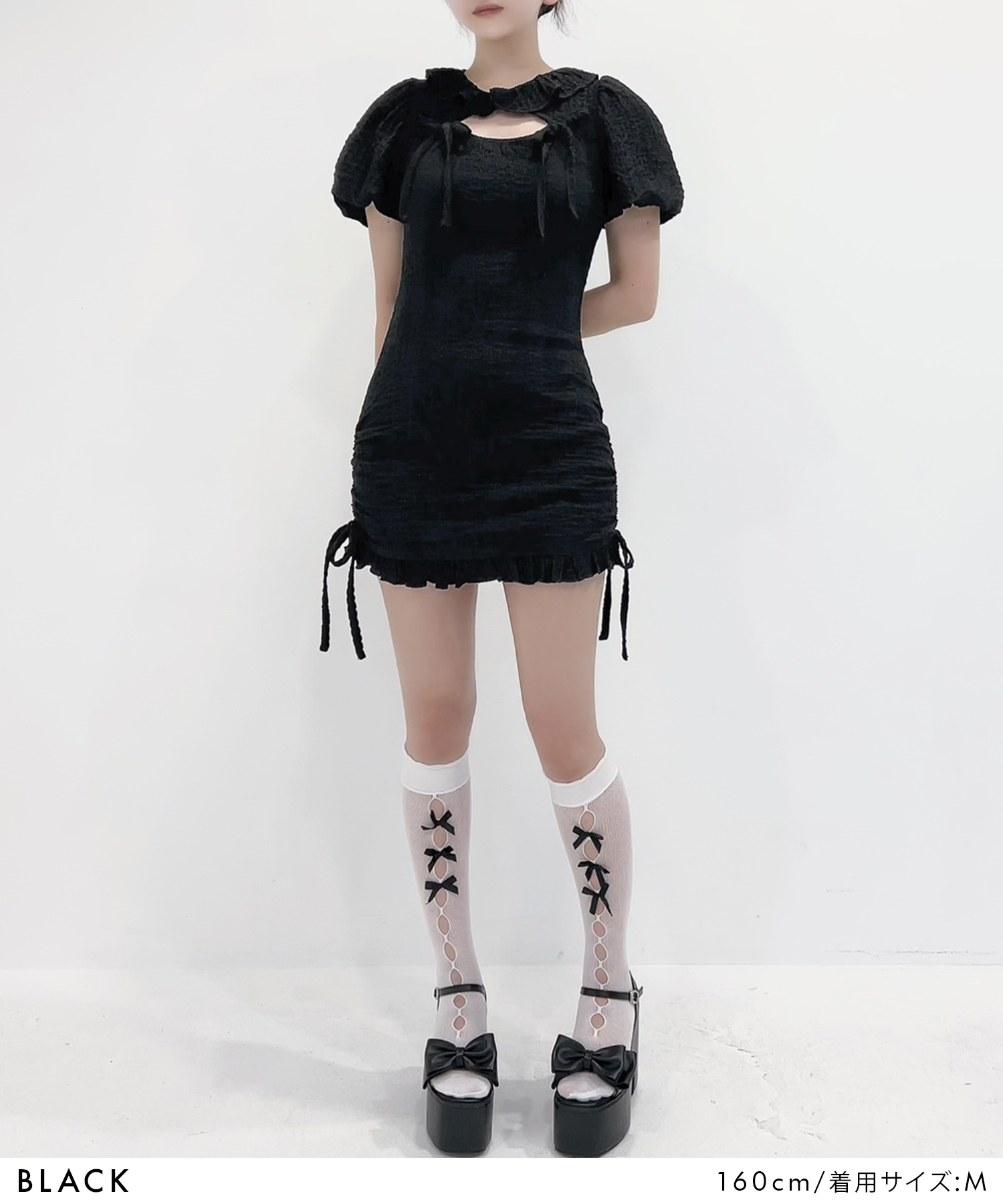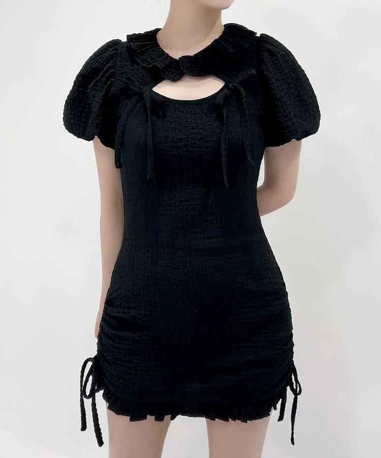 トレンドのドロスト×バルーンスリーブデザインのミニワンピースのご紹介。