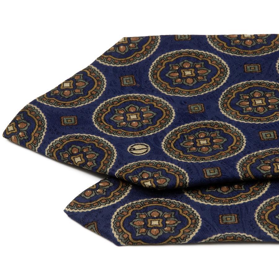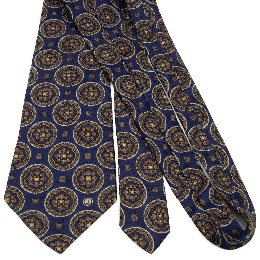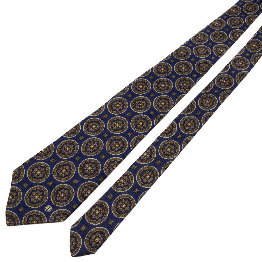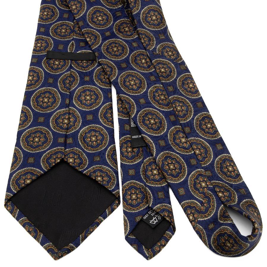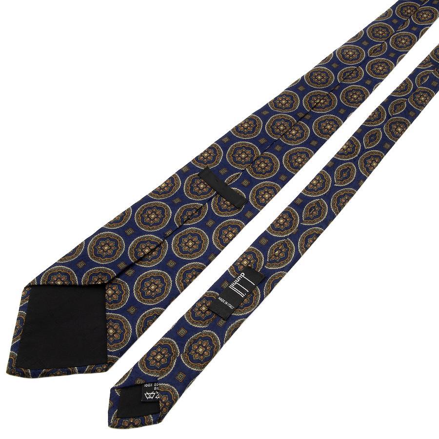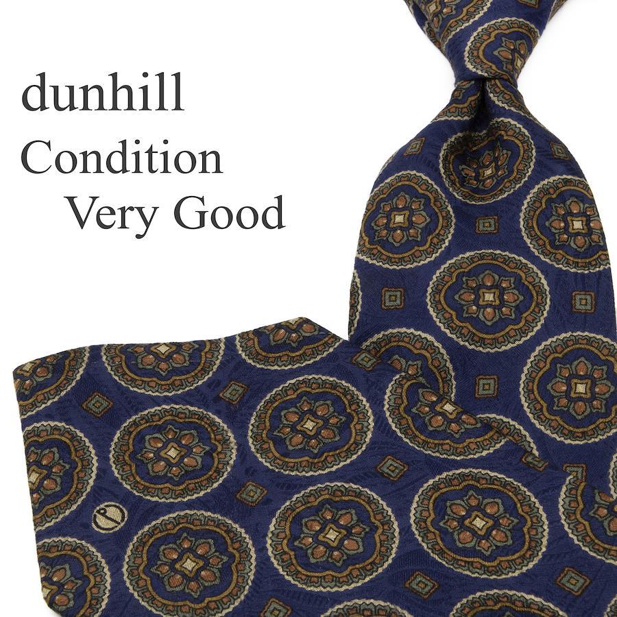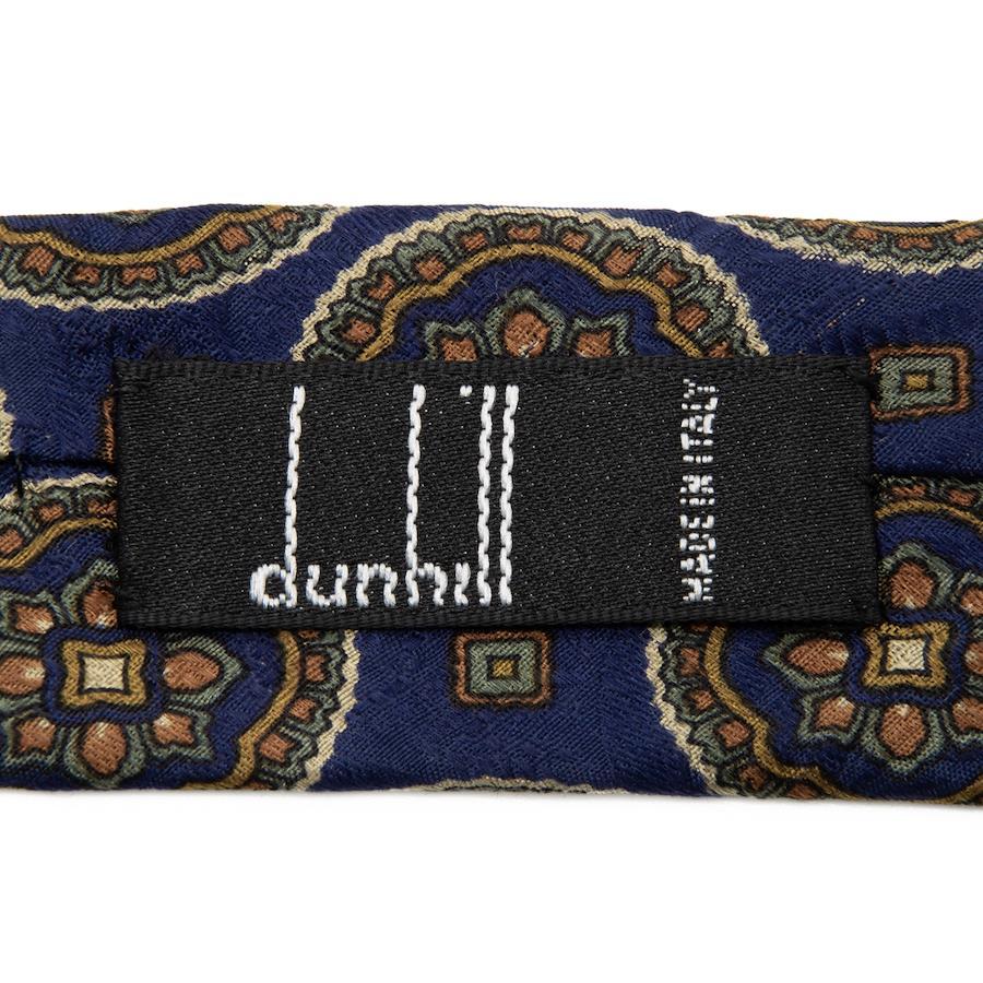 dunhill ネクタイ レギュラータイ ジャガードタイ メンズ レディース シルク 青 黄土色 グレーグリーン ビジネス カジュアル 小紋 総柄 Y2K 00s 光沢 ロゴ アラベスク 紋様 ハイブランド 珍しい おしゃれ イタリア製 綺麗 P479