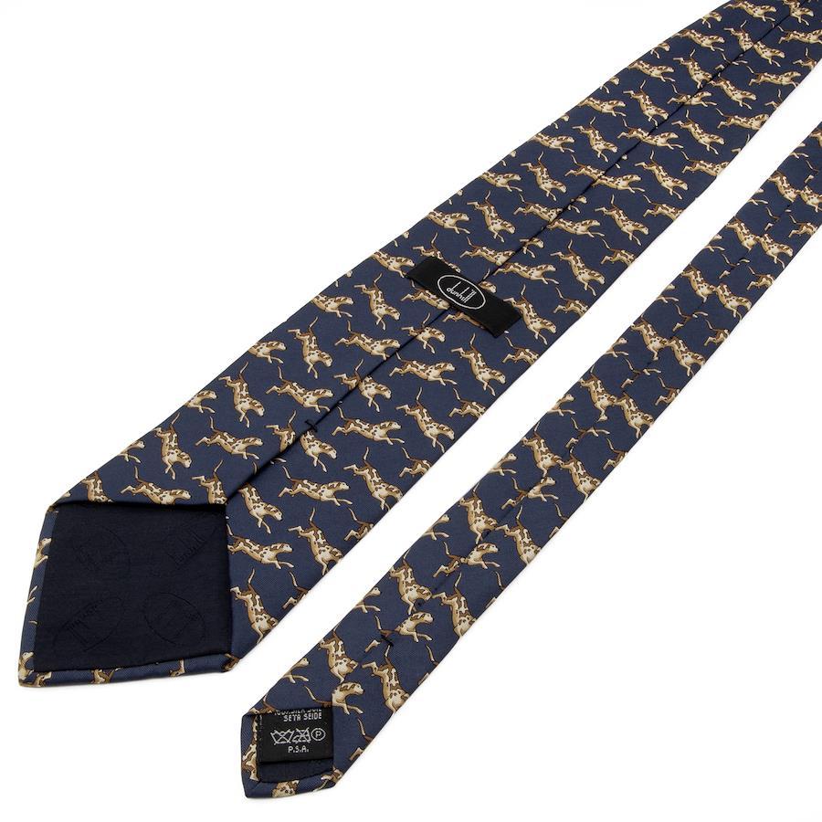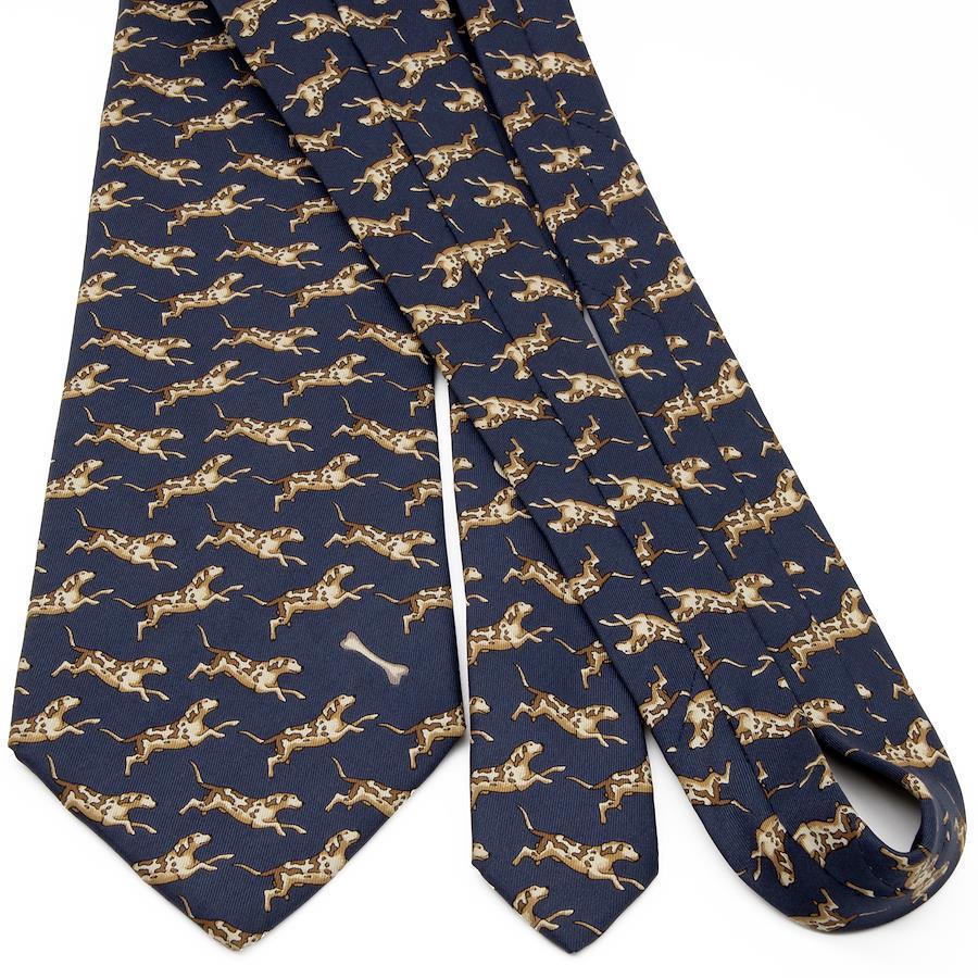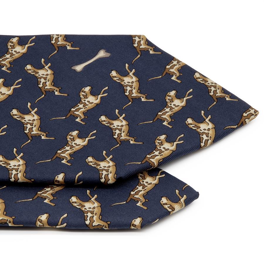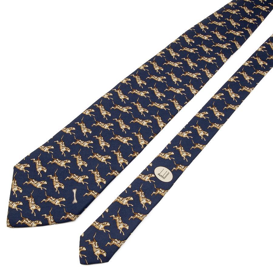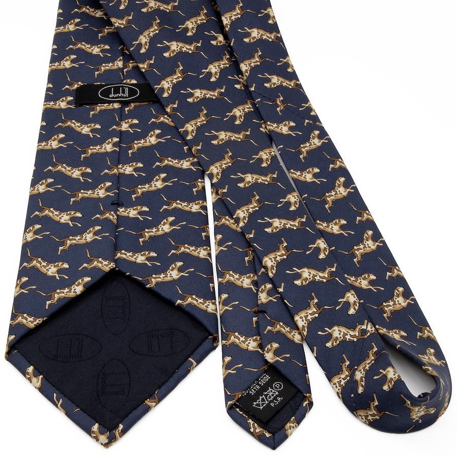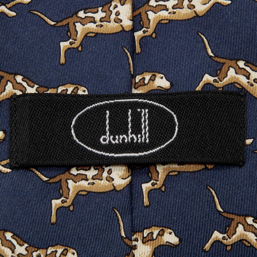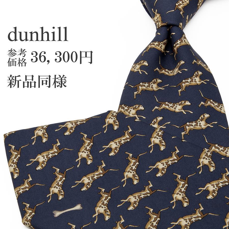 dunhill ネクタイ ワイドタイ プリントタイ 新品同様 メンズ レディース シルク ネイビーブルー ブラウン ベージュ ビジネス カジュアル オールオーバー 総柄 動物 アニマル 犬 ドッグ ブランド 珍しい かわいい おしゃれ イタリア製 綺麗 P623