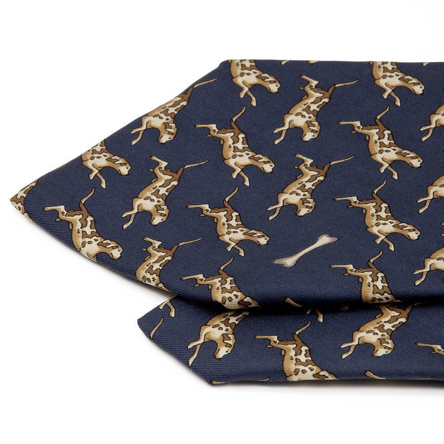 こちらは英国紳士の愛犬家の一面を表現した、ダンヒルのネクタイでございます。