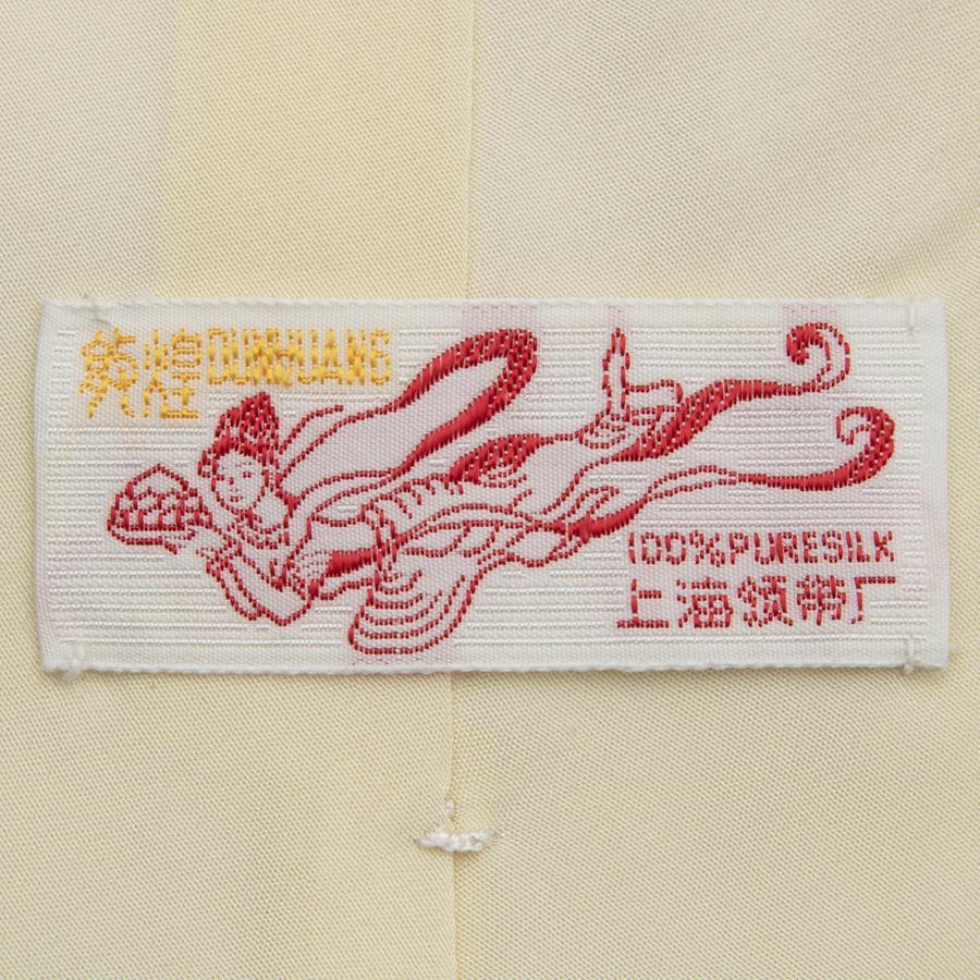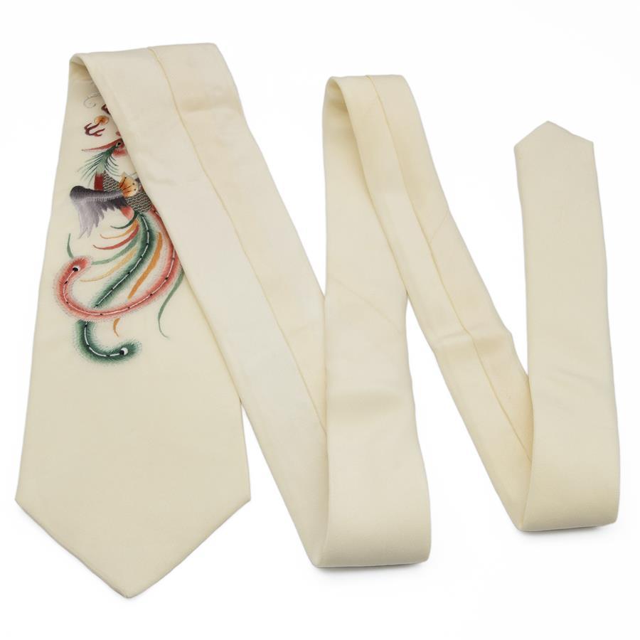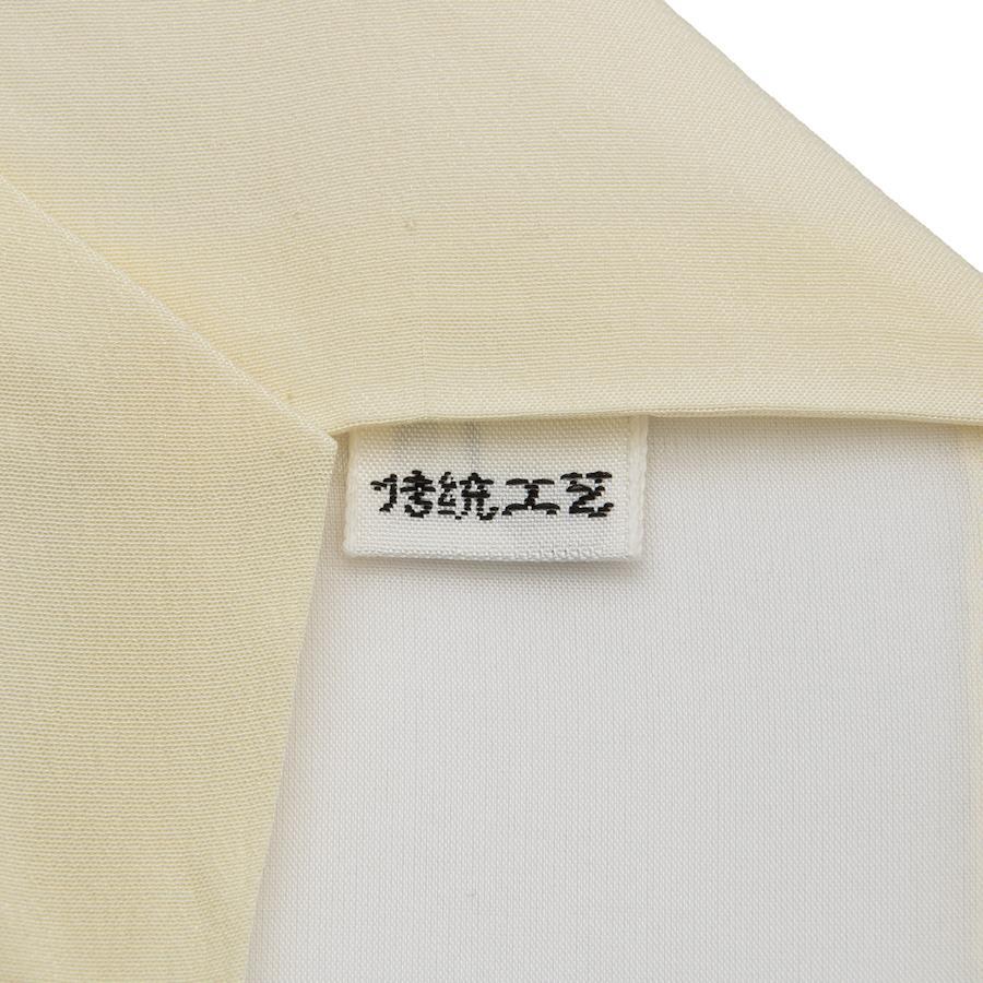 アイボリーの穏やかな色合いの中に、オレンジやレッド、グリーンで描かれた龍と孔雀が、まるで生きているかのような迫力がございます。