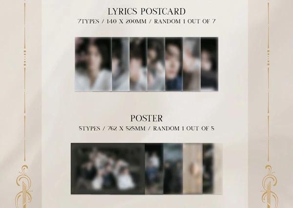 <予約特典>1. 60pフォトエッセイ(2種のうち1種ランダム)2. リリックポストカード(7種のうち1種ランダム)3. ポスタープレゼント!ポスターは折って同梱発送となります。
