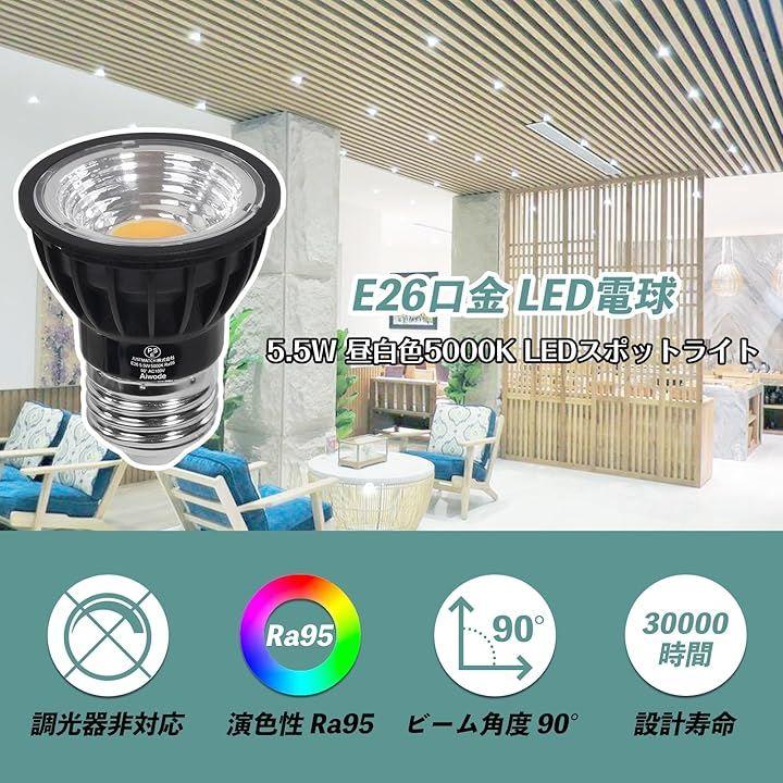 E26 LEDスポットライト LED電球 E26口金 5.5W 60W形相当電球色2700K CRI95 明るさ550lm 調光不可広角90°絶縁材料本体LED電球