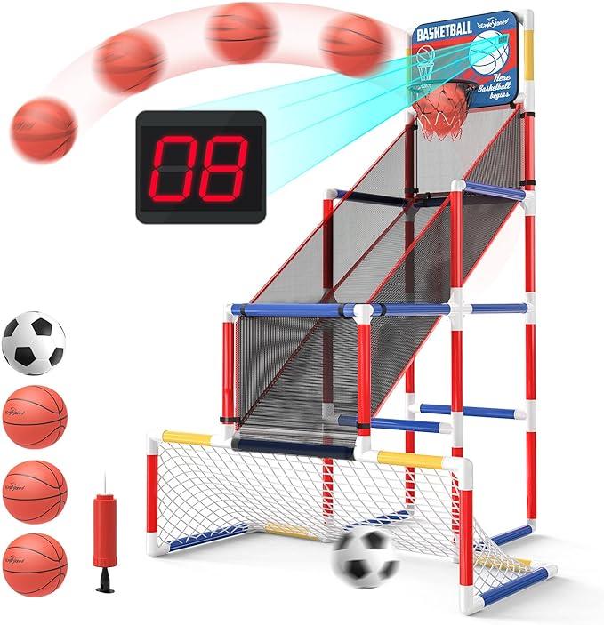 EagleStone バスケットゴール サッカーゴール 屋外 室内 おもちゃ 子供用 2in1ゴールセット バスケットボール3個 サッカー1個付き
