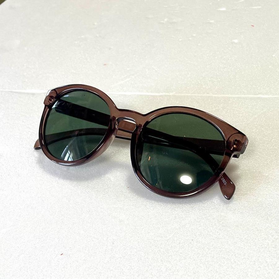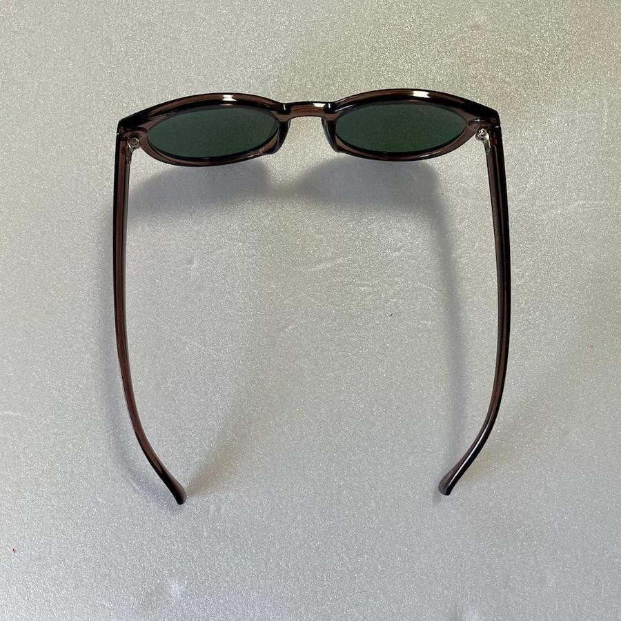 ☆こちらの商品はUSED品ですので新品や未使用品をお求めの方はご遠慮ください。ブラウンのプラスチックフレームにグリーンレンズのクラシックなラウンドサングラス。