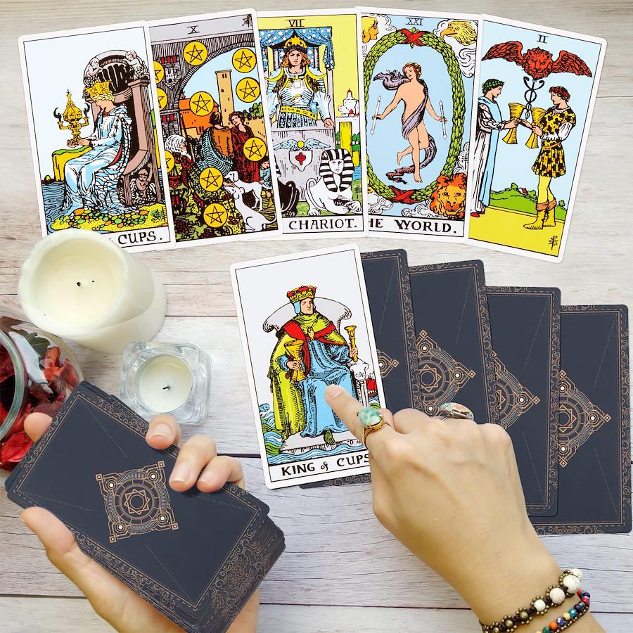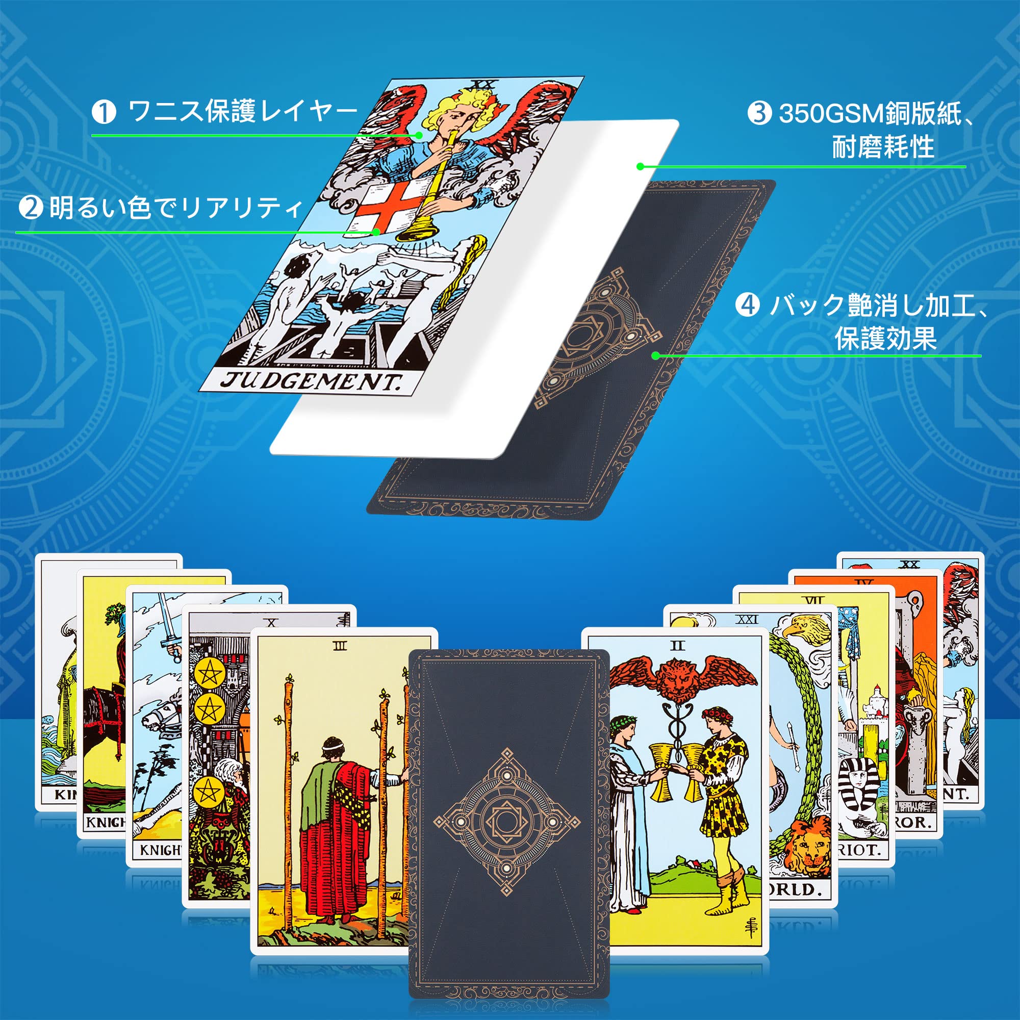 Based on the traditional Rider Waite, this tarot card has a muted color and a classic feel. Easy to understand and popular among beginners and experienced users Made of durable 350 GSM copperboard with laminated backing, thick and smooth card (We have retranslated the instruction manual translation is terrible.) It also comes with a Japanese instruction manual that describes the picture of the cards and how to use tarot cards. Even beginners can use it Comes with a pouch, velvet, soft and comfortable, ideal protection, convenient to carry when going out or traveling Size: Card: 2.8 x 4.7 inches (7 x 12 cm); Japanese Instruction Manual: 3.1 x 4.9 inches (8 x 12.6 cm); Pouch: 5.8 x 7.0 inches (14.7 x 17.7 cm); Number of Cards: 78 cards (22 large Arcana, 56 small Arcana). Weight: 1000 g)