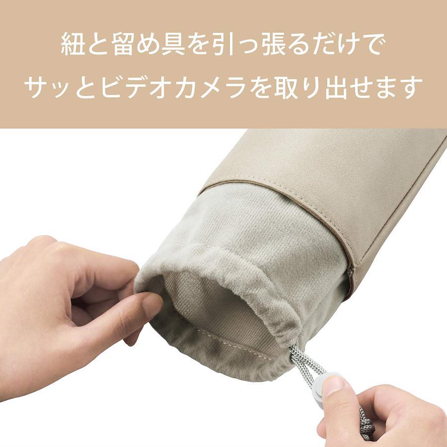 ■ 紐と留め具を引っ張るだけで簡単開閉。サッとビデオカメラを取り出せます。