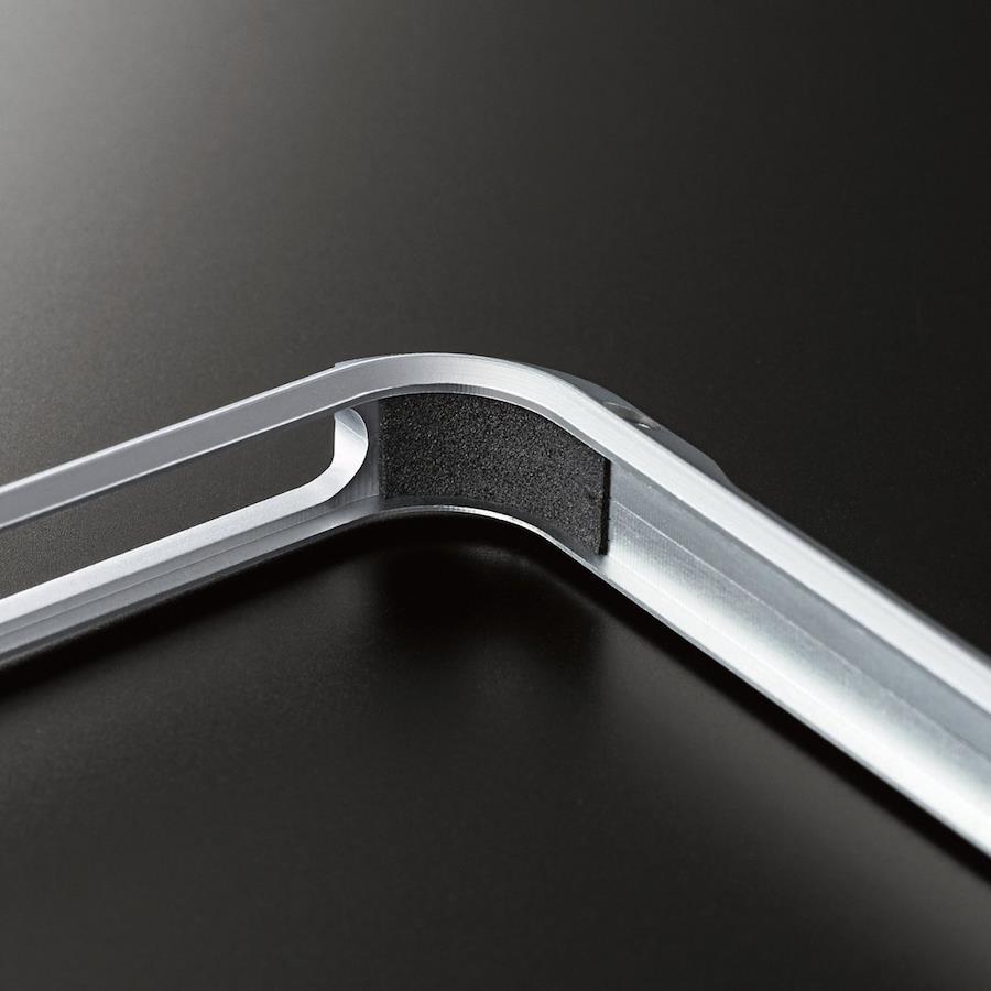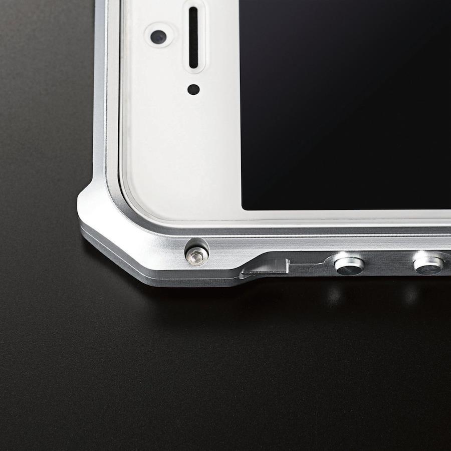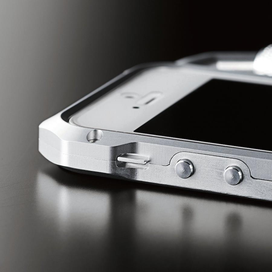 スタイリッシュなアルミバンパーとカラビナが一体になり、そのままぶら下げることができるiPhone 5s/5用アルミカラビナバンパーです。スクリューロックを外すことでカラビナが開くので、ベルトループやバックパックショルダーのDカン、カバンの持ち手などにぶら下げて使用可能です。アルミ素材にサンドブラスト加工を施し、手になじみやすくスタイリッシュな仕上げになっています。バンパー内側にEVAシートを採用し、装着時にiPhone本体をキズつけません。各ボタン部には快適な操作感が得られるアルミ素材のボタンカバーを採用しています。