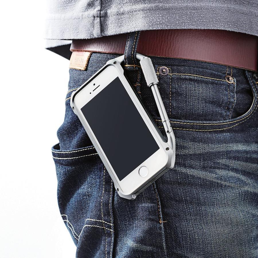 スタイリッシュなアルミバンパーとカラビナが一体になり、そのままぶら下げることができるiPhone 5/5s用アルミカラビナバンパーです。