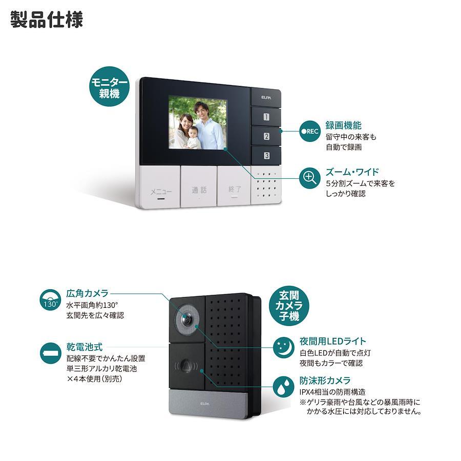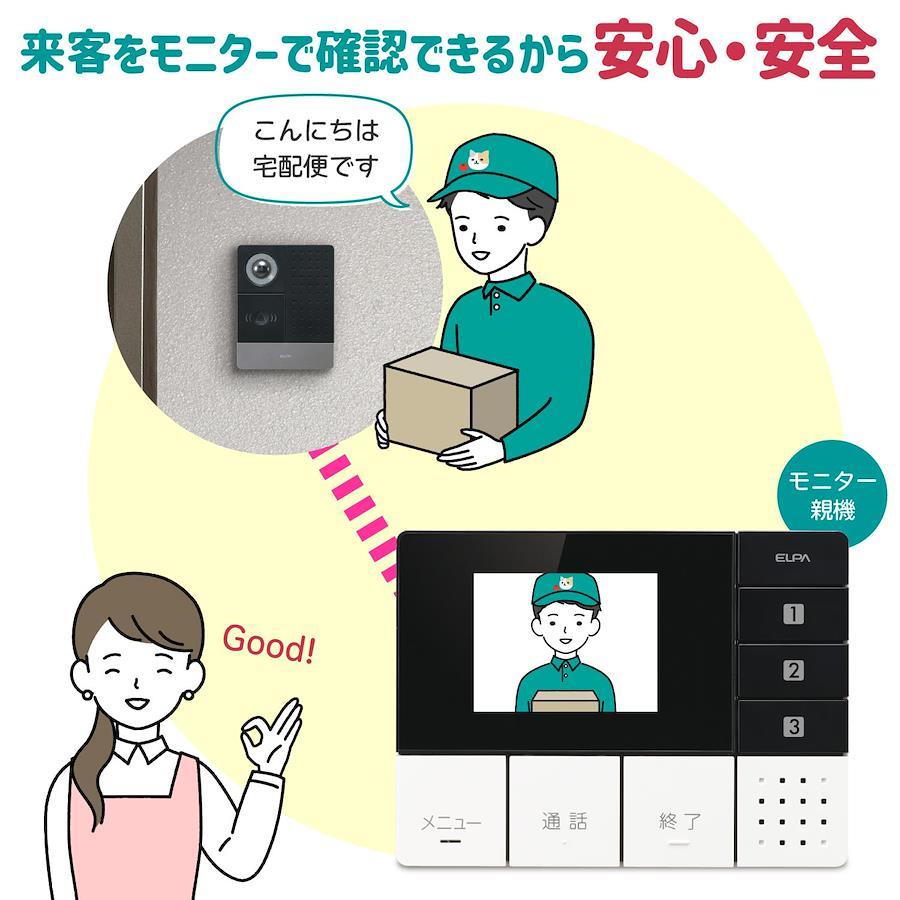 3営業日以内に発送≪新品未開封品≫:ELPA DECT ワイヤレステレビドアホン 親機1台カメラ子機1台セット DHS-SM2030 1864100