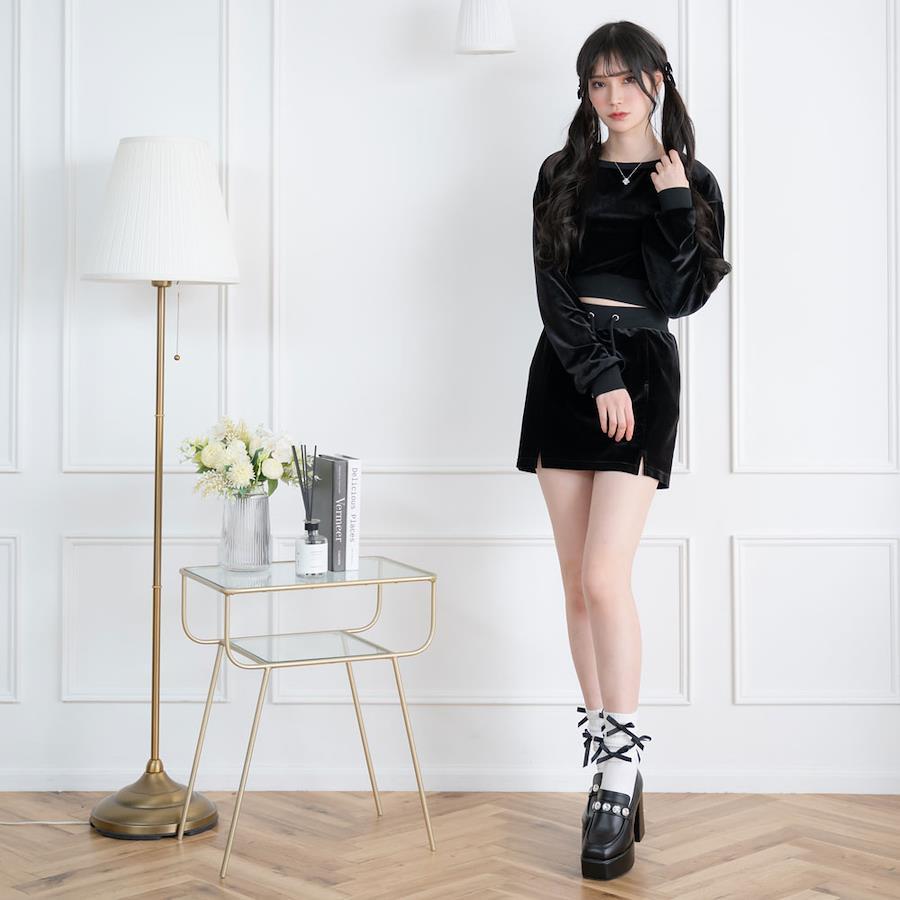 思わず触りたくなるようなベロア素材は着心地が良く、シワにもなりにくいのでワンマイルウェアにぴったり!