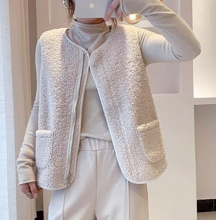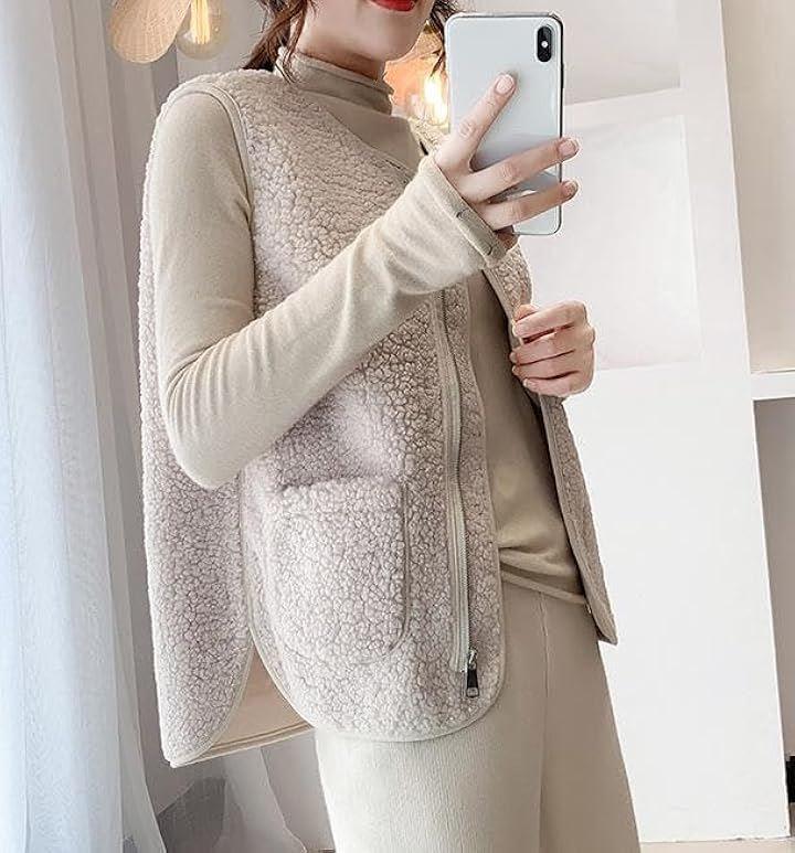 もこもこ感がかわいいプードルフェイクベストはカジュアルコーデにぴったりのアイテム。