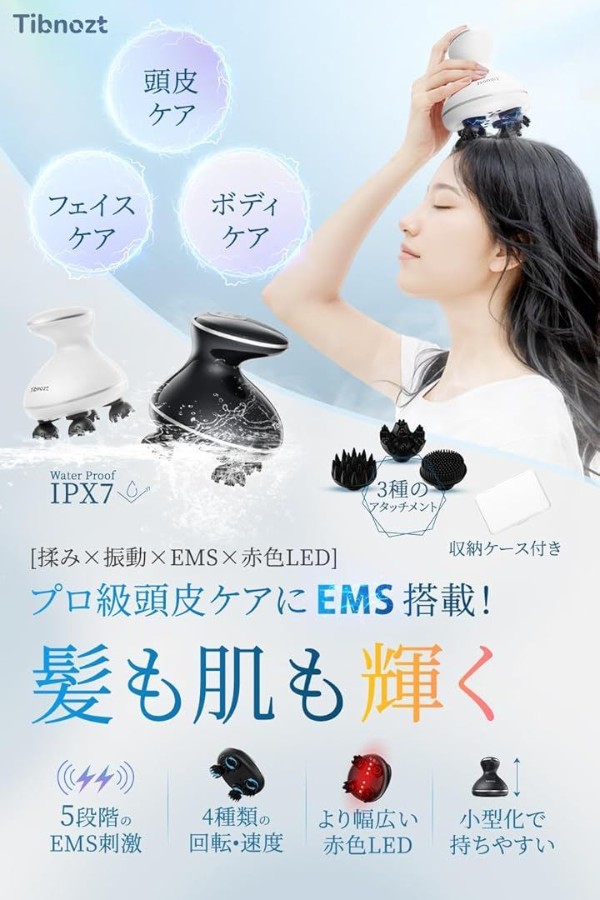 揉みだけではカバーしきれない筋肉を刺激し、頭皮と表情筋をケアします。