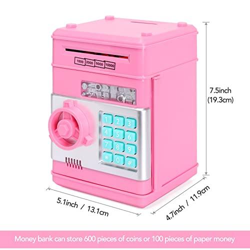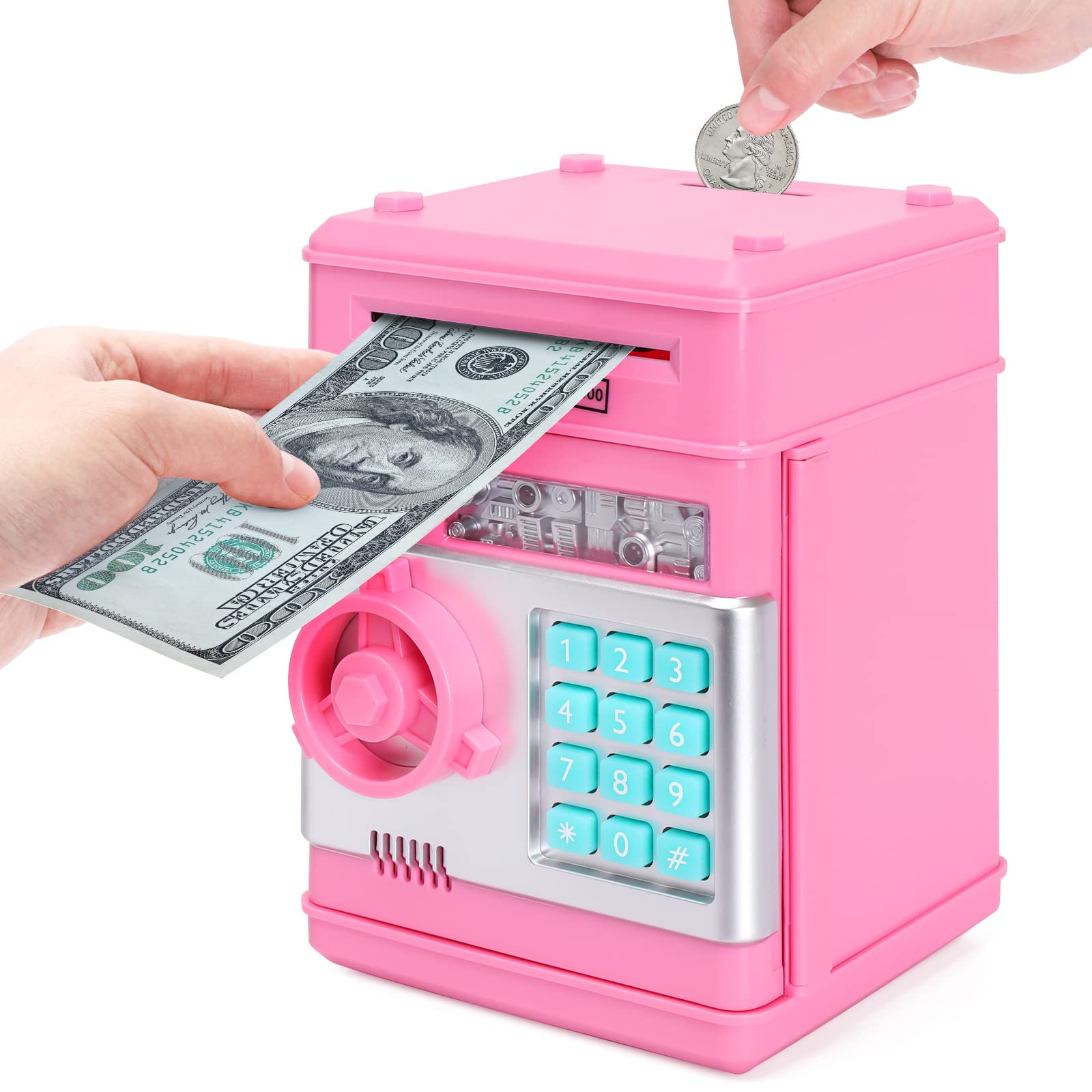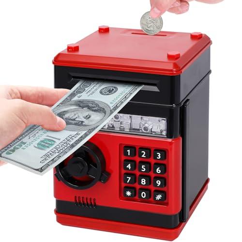 ??【高品質素材】環境に優しいABS樹脂製。無臭、アンチエイジング、耐久性、大人も子供も使用できます。大容量で、大人がプライベートな小物を入れるのに役立ちます。バッテリー駆動:単三電池3本(別売り)。 deposit【自動ロールマネー】: 紙幣を巻物に置くと、自動的に機械に巻くことができます。 (ただし、紙が古すぎたり柔らかすぎたりすると機能しないことに注意してください)。上部のコインスロットでコインを投げることができます。 ??【パスワード貯金箱】: 4つの電子パスワード保護。パスワードが間違って入力された場合はプロンプトが表示されます。4桁の正しいパスワードを入力した場合にのみ開き、緑色のライトが点灯し、ノブを時計回りに回してドアを開くことができます。 (デフォルト:0000、好きなようにパスワードを変更できます)。 ??【大容量のお金節約ボックス】: コイン600枚または紙幣100枚を収納できます。 面白くて楽しいお金を節約する方法。教育的であり、節約の重要性を子供たちに教えます。お子様の贈り物に必須のアイテムです。お金を節約する良い習慣を身につけるのに大いに役立ちます。 ??【最高の子供のおもちゃ】: Cpsia警告:窒息の危険性があります。おもちゃ、ジュエリー、野球カードなどの保管に使用できます。 マネーバンクの上部にコインを入れ、紙幣を側面に挿入します。金庫を貯金箱として使用するだけです。これは現金とコインを節約する高品質の電子貯金箱です。クリスマス、新年などの子供の誕生日プレゼントやホリデーギフトに最適です。