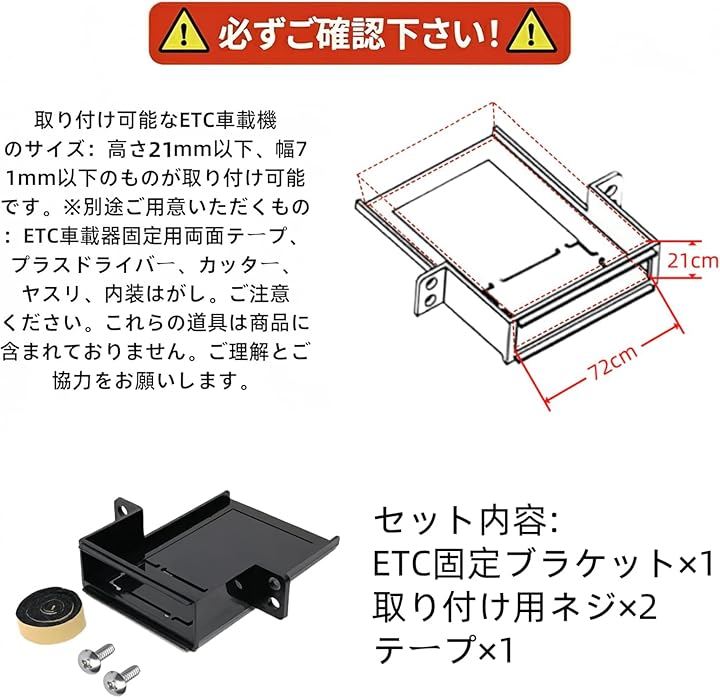 ・セット内容:ETC固定ブラケットx1、取付用ネジ、両面テープx1