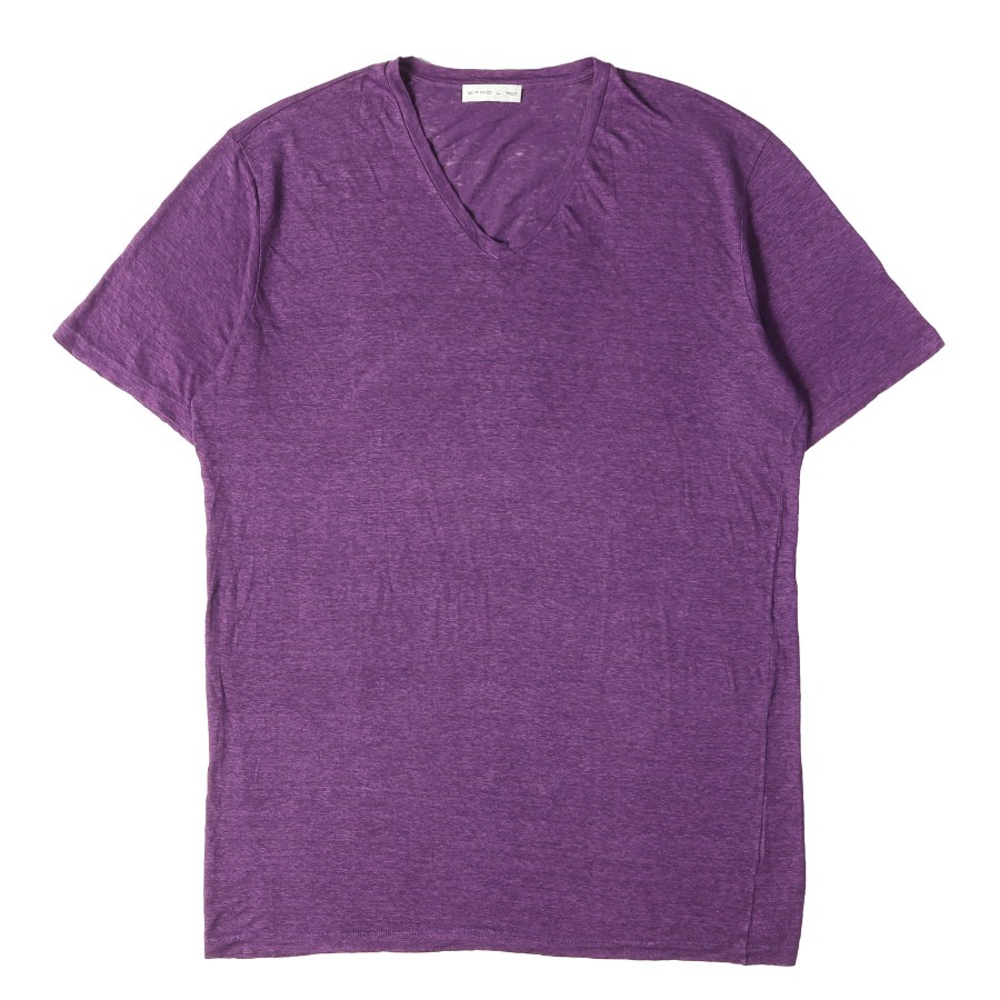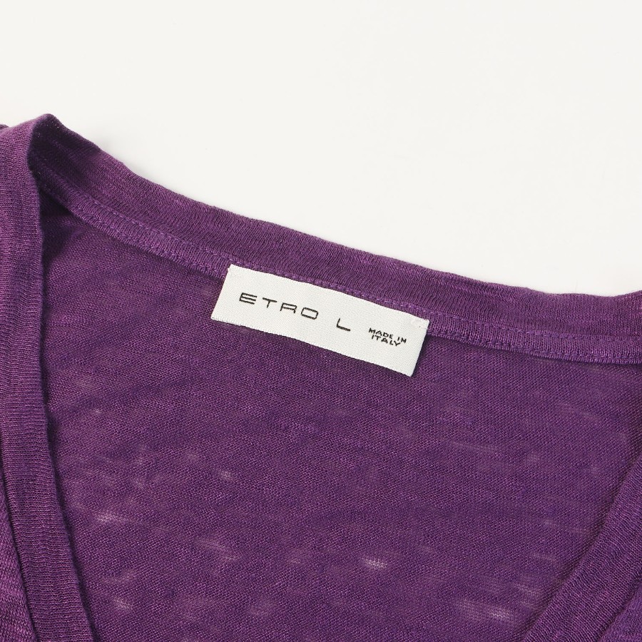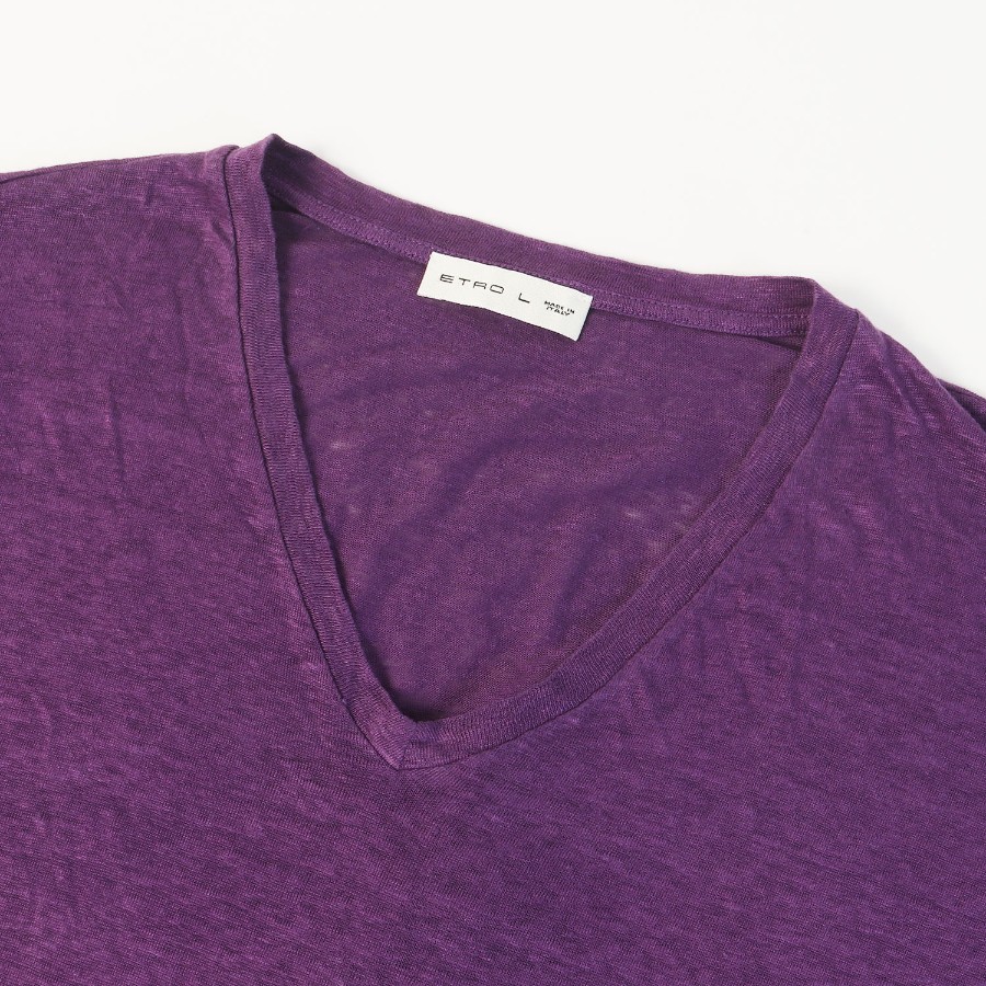 ETRO エトロ Tシャツ パープル 紫 サイズ:L | スラブニット Vネック Tシャツ | 半袖 ショート ハーフ スリーブ カットソー【メンズ】【中古】【美品】【K4793】