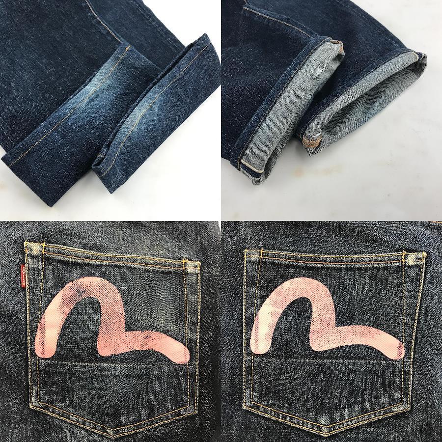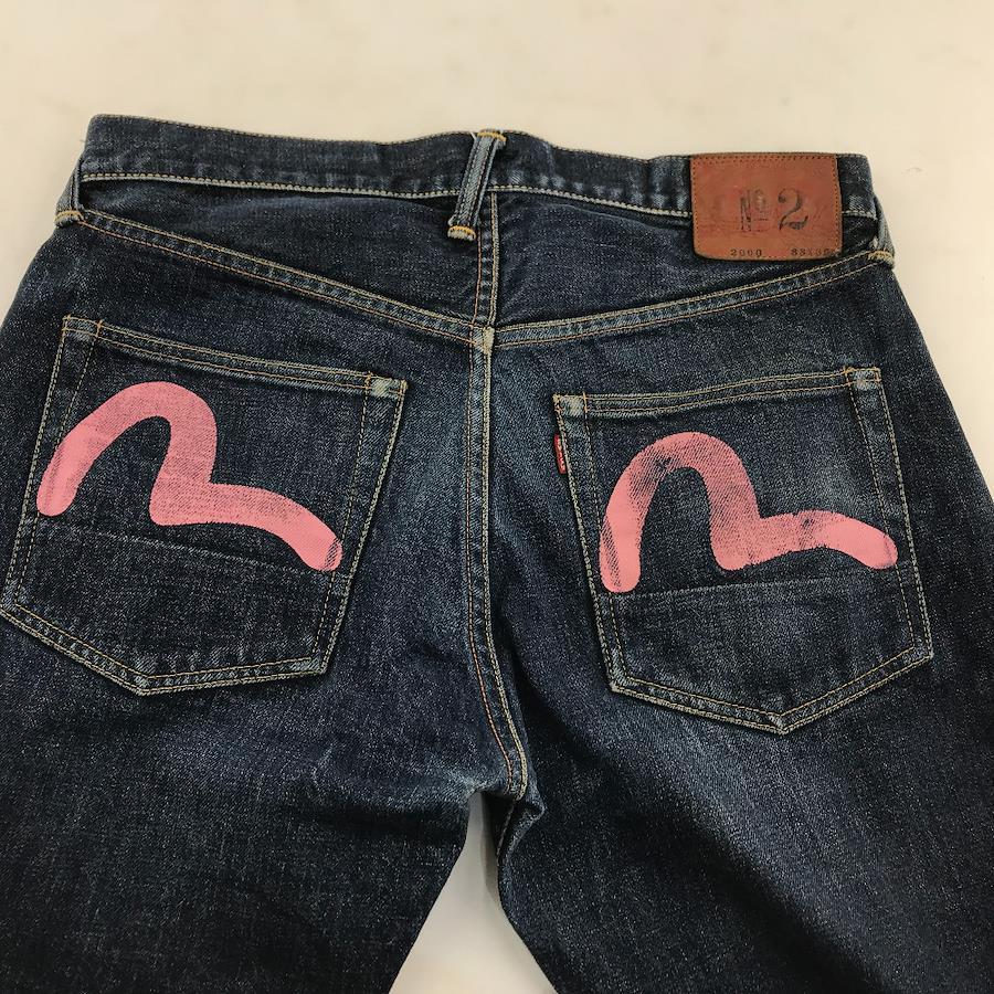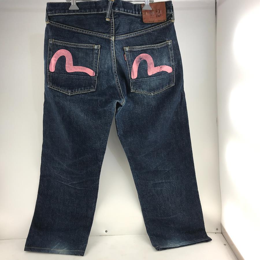 EVISU Button fly denim pants Indigo mens Jeans Pink Seagull Size 33x35 Denim pants cotton Lot.2000 02w09836