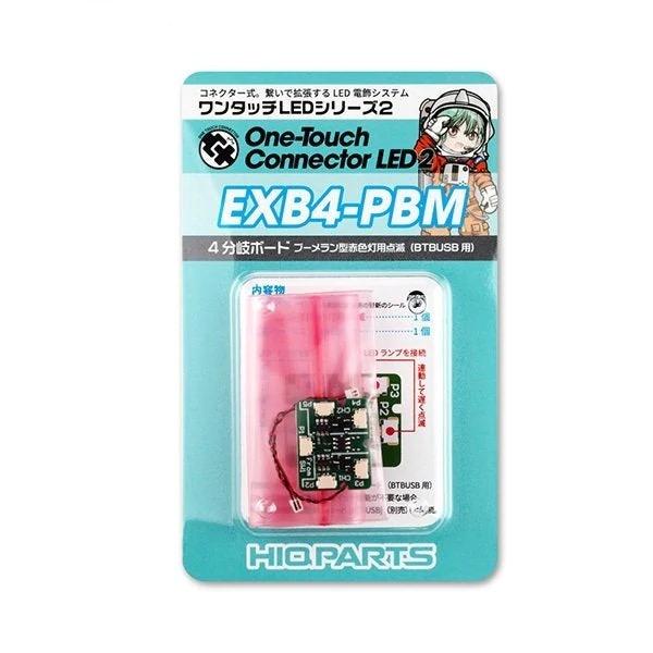 ハイキューパーツ EXB4-PBM 4分岐ボード ブーメラン型赤色灯用点滅(BTBUSB用) 近年使用されているブーメラン型や、LEDの赤色灯の点滅を再現するための追加基盤です。ブーメラン型赤色灯用の点滅パターン入り基板。[P4・5]ジャックに繋いだLEDランプは赤色灯の内側用で速く点滅、[P2・3]ジャックは外側用で遅く点滅し、点滅で回転灯を表現します。点灯には本製品の他に、MicroUSB(B)電源供給ボード[BTBUSB](別売)、LEDランプ(別売)が必要です。[P2・3・4・5]ジャックはLEDランプ用。[P1]ジャックは[BTBUSB]またはスイッチ追加ボード(BTBUSB用)[SW1]用のジャック。ON/OFF機能が必要な場合は、[SW1]を追加してください。