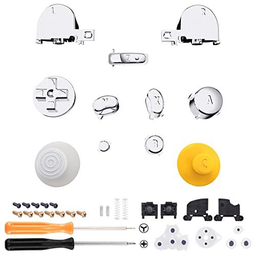Kindly understand before purchasing: 1.Only compatible with GameCube controller, not compatible with other controllers. 2. Only full set buttons for GameCube controller, not the main unit, other parts are not included. 3. Customers need to disassemble the GameCube controller and switch the original button. Customers should have a medium electronic installation experience. Search "eXtremeRate Full Set Buttons for GameCube" or "ziXQslL7TxA" on YouTube to watch the installation video Package Includes: A/B/X/Y*1 1 x Cross key button 1 x Start/pause button Z/L/R button x 1 Thumb sticks x 2 Note: The controller, shell and other parts are not included! Pour Replacement button sets and thumbsticks to fit GameCube controllers Precisely cut and function just like the original buttons Made of premium ABS material which is durable and practical. The unique design of these buttons adds personality to your controller The installation process is better to have moderate electronic modification experience. Search "eXtremeRate Full Set Buttons for GameCube" or "ziXQslL7TxA" to see installation video on YouTube The metallic chrome shiny color looks great and makes the controller very attractive. Pair with eXtremeRate replacement shells for a great look Package includes full set buttons and thumbsticks (electronics not included), cross driver, triangular screwdriver and spare screws for GameCube controllers