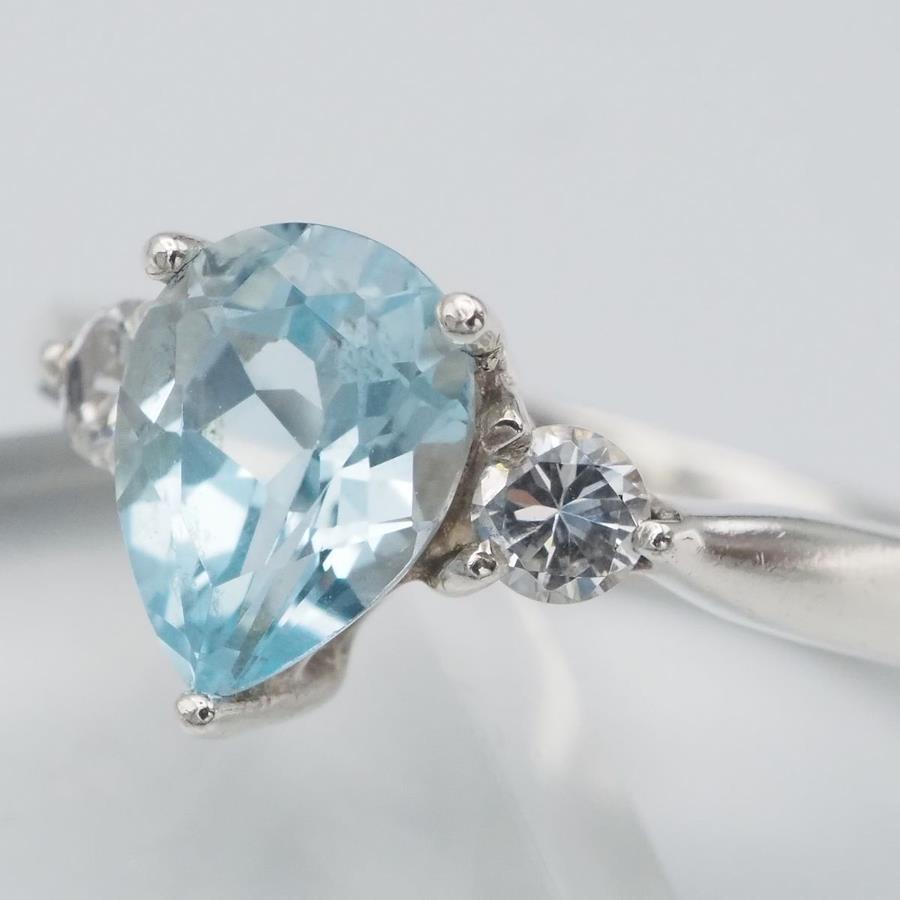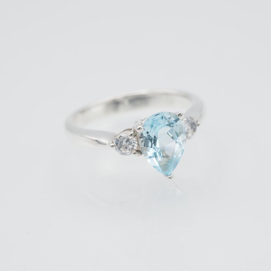 F220 ブルートパーズ ダイヤモンド風 925刻印 リング デザイン シルバー 指輪 11月誕生石 11号