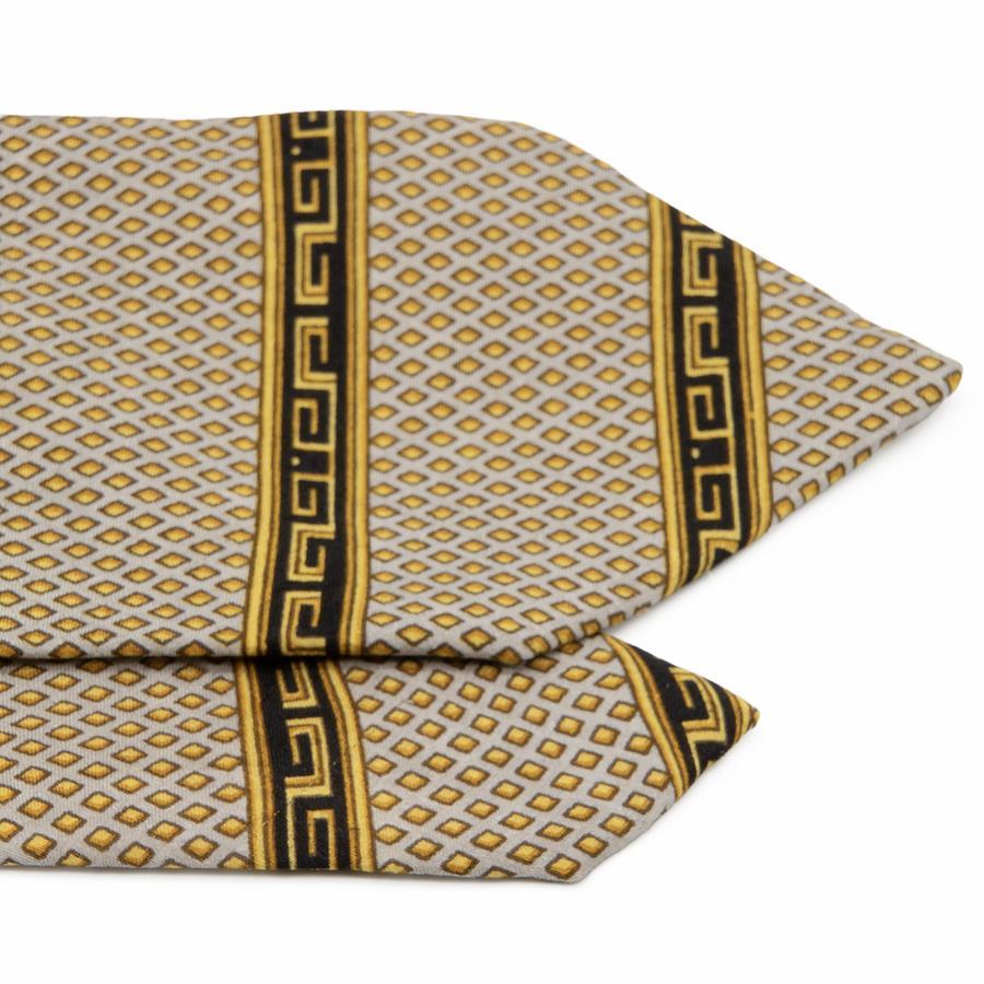 ストライプにあしらわれた、古代ギリシャ由来の「グリークキー」模様が、その威厳ある雰囲気をさらに高めております。