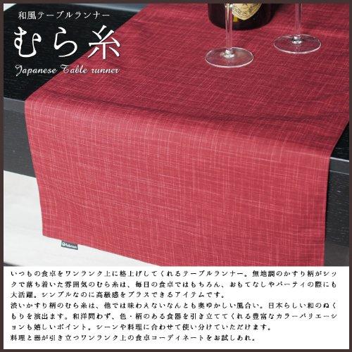 3営業日以内に発送≪新品未開封品≫・ワンランク上のテーブルコーディネートいつもの食卓をワンランク上に格上げしてくれるテーブルランナー。無地調のかすり柄がシックで落ち着いた雰囲気のむら糸は、毎日の食卓ではもちろん、おもてなしやパーティの際にも大活躍。シンプルなのに高級感をプラスできるアイテムです。 渋いかすり柄のむら糸は、他では味わえないなんとも奥ゆかしい風合い。日本らしい和のぬくもりを演出ます。和洋問わず、色・柄のある食器を引き立ててくれる豊富なカラーバリエーションも嬉しいポイント。シーンや料理に合わせて使い分けていただけます。 料理と器が引き立つワンランク上の食卓コーディネートをお試しあれ。