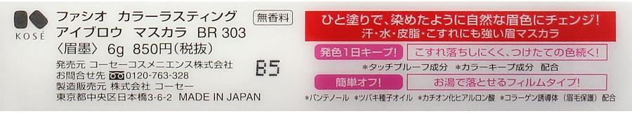 通常1-5営業日で発送:FASIO(ファシオ) カラーラスティング アイブロウ マスカラ ダークブラウン BR303 6g色: BR303 ダークブラウン