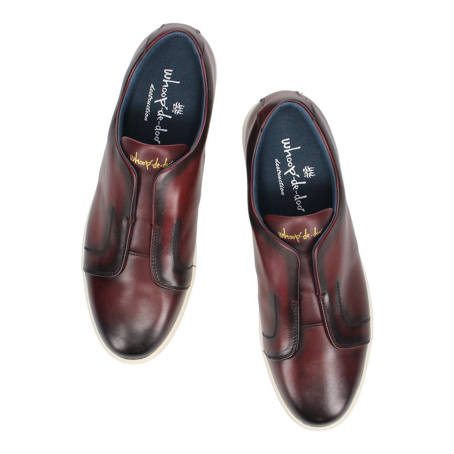 | フェイククォータースリッポンスニーカー 【素材】 ソフトなクラストレザーに陰影加工を施したカウレザーを使用。 ※本革を使用していますので多少のムラ・小傷がございます。 【デザイン】 羽根と呼ばれるパーツをデザインし、内側に隠されたエラステックバンドでスポッと履けるスニーカー。 アッパー素材の高級感と着脱のしやすさを兼ね備えた、ハイクォリティースニーカーです。 ライニングには高機能マイクロファイバーを使用し吸汗性能・防臭のパフォーマンスに優れています。 【サイズ】 普段革靴で25.5cm、ライニングやインソールにクッションが入っているスポーツ系スニーカーで26.5cm〜27.0cmを使用するスタッフで<41/25.5cm>がちょうどよかったです。 ※サイズ感は、個人差がございますのであくまで参考程度にお考え下さい。 ■ブランド:whoop'-de-doo' destruction ■カラー:キャメル、グレー、ワイン ■アッパー素材:牛革 ■底材:合成ラバー ■ソール:約1.5cm ■ヒール:約2.3cm ■重さ(片足)約:350g ■製法:オパンケ製法 ■中国製 *上記は全て25.5cmで計測した数値です。 *多少の誤差が生じる場合がございますので予めご了承下さい。 whoop de doo co.,ltd whoop'-de-doo' フープディドゥ |