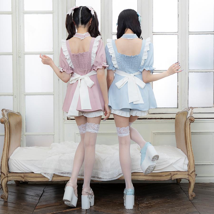 ウエスト部分レースアップ二段、袖口にもリボン付き