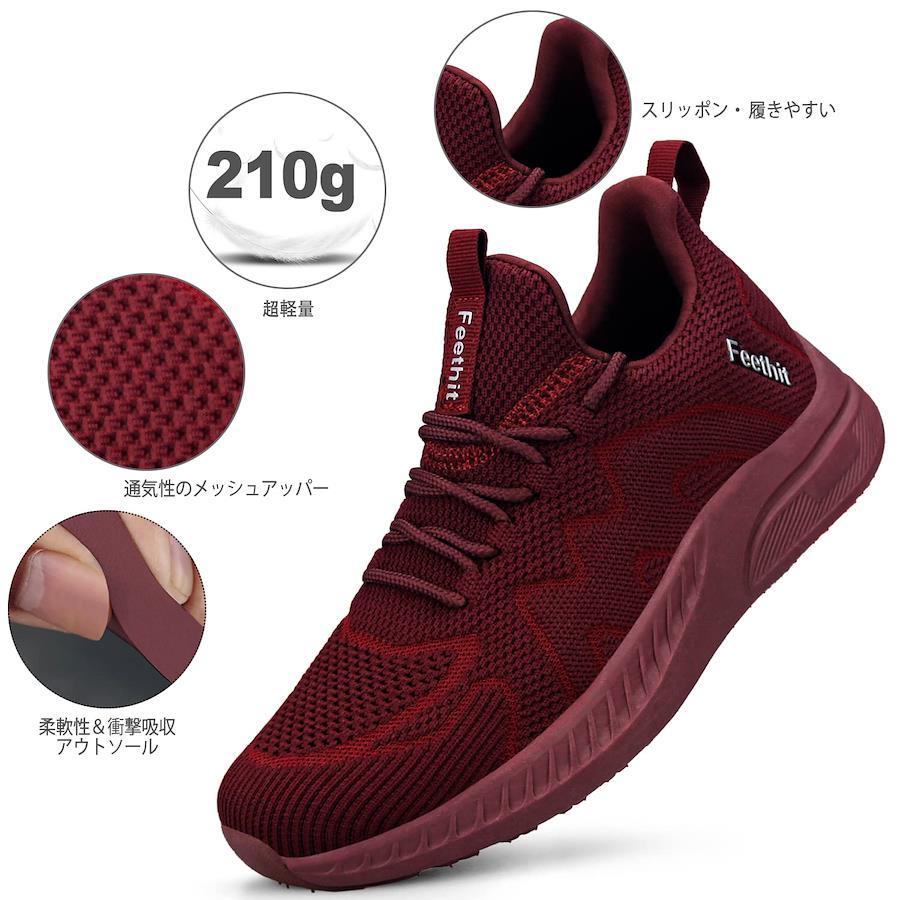 クロージャータイプ プルオン 【通気性】一体織りメッシュは、軽量、通気、速乾など機能が優れて、熱がこもるのを防ぎ、さわやかな履き心地を提供してくれます。一日履いても蒸れにくいです。着用時の季節を選びません。【超軽量/履き口も快適】非常に軽い素材で作られているので、靴全体は軽くて、緩衝の効果は良いです。足に負担をかけません。一体型フォームの履き口が、しっかりとスムーズに衝撃を吸収。足首周りが快適なローカットデザインで、着脱も簡単です。【柔軟性】ソールはEVA素材を採用し、非常に柔軟で、屈曲性があります。スニーカーアッパーとソールは柔らかいし、疲れにくい、抜群のフィット感。長時間歩いても足に負担をかけないです。履きやすくて、丈夫なスポーツシューズです。【滑り止め】滑り止め&耐久性のあるラバーパッチ。また、耐久性とクッション性も良くて、足にやさしい履き心地を提供します。中底は柔らかく、クッション性が優れて、足を保護し、衝撃力を効率よく分散、足に負担をかけません。【適用場所】どんな服にも、どんな場合にも合わせやすいとシンプルなカジュアルスニーカーです。ランニング、ジョギング、ウォーキング、トレッキング、クラブ、ジム、通勤、通学、室内、ちょっとした外出や買い物、散歩など、幅広い場合が使えます。