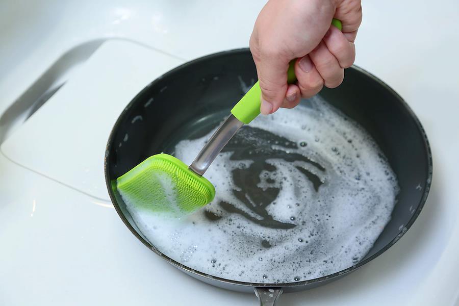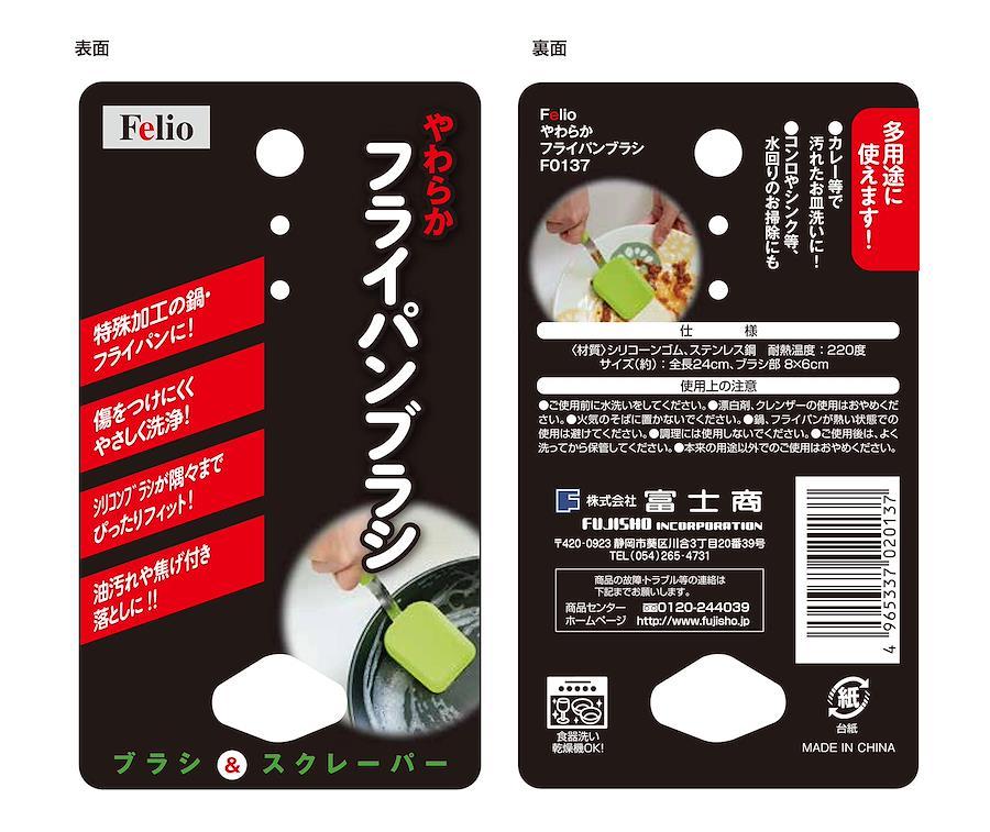 Felio キッチンブラシ フライパンブラシ スクレーパー シリコン製 ライムグリーン フライパン洗い 鍋洗い 食器洗い F0137 1本入